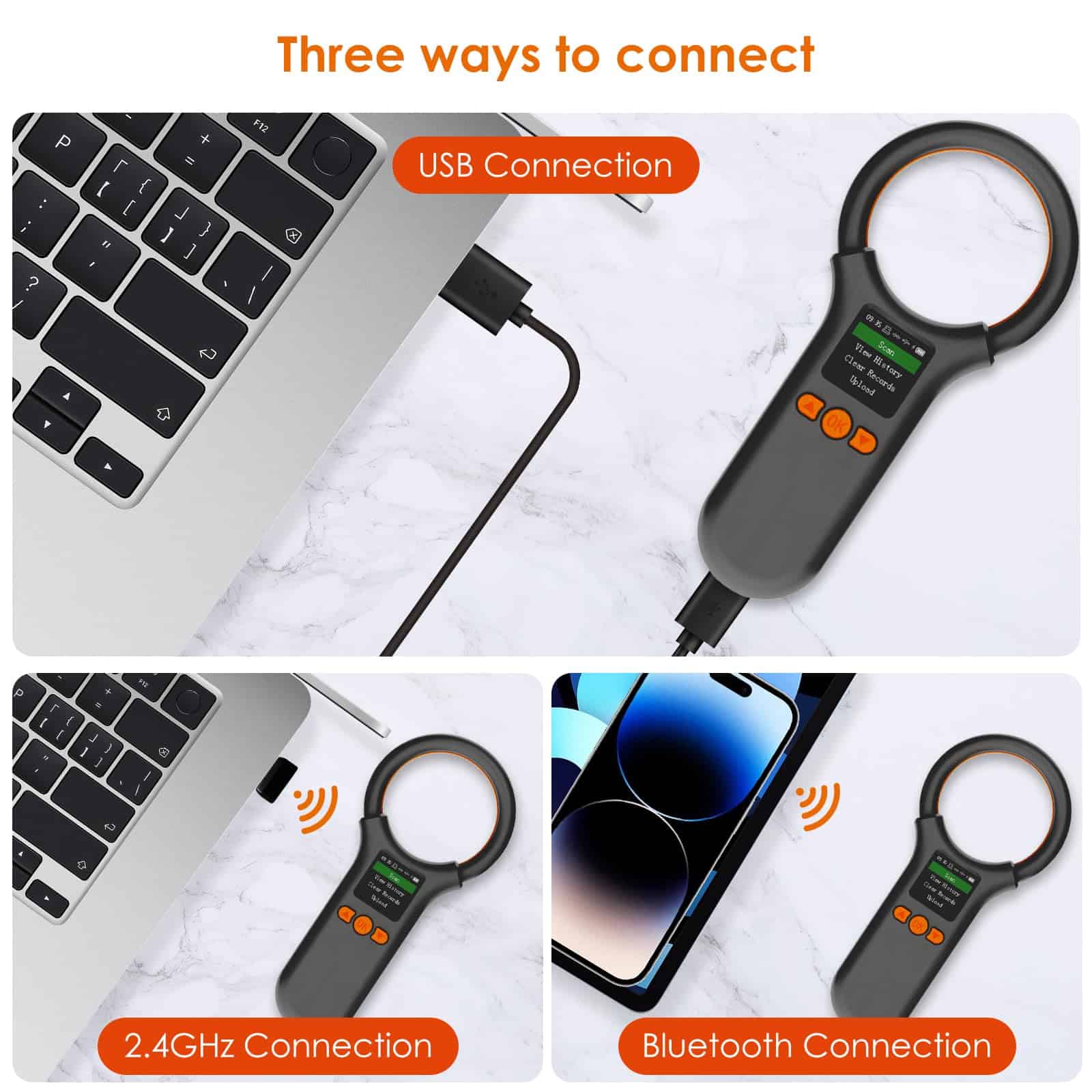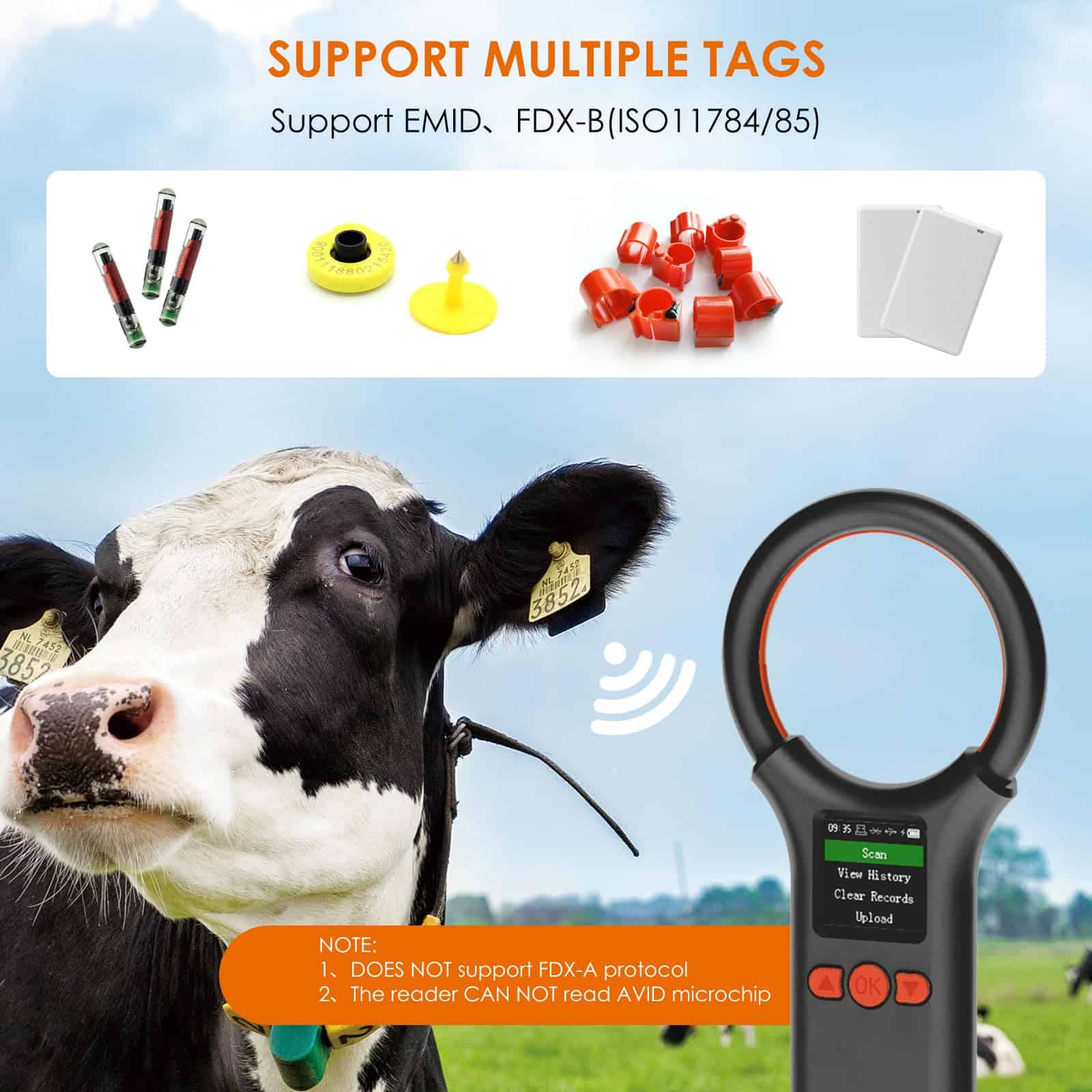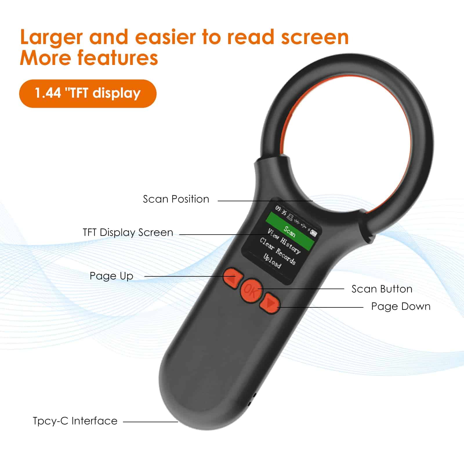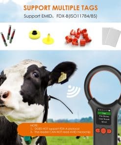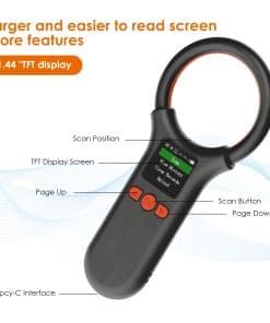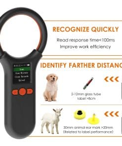 1. La nueva pantalla mejorada del Escáner de Microchip para Mascotas es más grande, tiene más funciones, es más fácil de leer. La pantalla TFT de 1.44″ muestra el número de etiqueta y el estado del dispositivo, visible en condiciones de luz brillante al aire libre. Puedes ver historial, borrar historial, cargar datos, enlace inalámbrico, ajustar brillo de pantalla, hora, volumen, etc., fácil de administrar tus datos. Escáner de microchip para mascotas portátil y de mano. La forma del dispositivo mejorada, pequeña y redonda, cómoda al tacto, fácil de llevar. 2. El lector de chip para mascotas puede almacenar hasta 500 etiquetas, el doble que otros escáneres. Puedes cargar esta información a tu computadora mediante cable USB 2.0, inalámbrico 2.4G, Bluetooth. 3. Soporta ISO 11784/11785, FDX-B y FRID ID64. Este escáner de identificación de microchip para mascotas portátil puede leer virtualmente todos los microchips FDX-B (15 bits) para identificación animal que cumplen con las especificaciones ISO 11784 e ISO 11785. Ampliamente utilizado en gestión de animales, gestión de recursos e inspección ferroviaria. Si se encuentra un perro o gato sin collar, puedes escanear para ver si tienen un chip implantado, aumentando las posibilidades de identificar tu mascota. Nota: El lector no puede leer el chip Avid. La ID de 9 bits no es reconocida. 4. Conexión USB, conexión inalámbrica 2.4G y conexión Bluetooth son tres tipos de conexiones. La visualización de datos del lector de microchip para animales no está limitada por la ubicación. Si estás en el campo, es fácil ver los datos a través de un teléfono inteligente. Esto ahorrará más tiempo para los rescates de animales. 5. Reconocimiento rápido, distancia de reconocimiento más larga. Tiempo de respuesta de lectura < 100ms, mejora la eficiencia del trabajo, un paso más rápido. Lector de microchip para mascotas lector de tarjetas sin contacto, utiliza tecnología avanzada de radiofrecuencia RFID, distancia de identificación más lejana, etiqueta de tubo de vidrio de 2-12 mm > 8 cm, etiquetas de oreja de animal de 30 mm > 20 cm (relacionado con el rendimiento de la etiqueta).