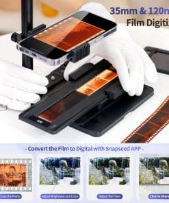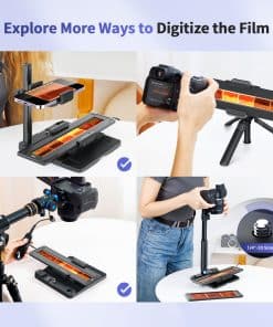 El Escaner de Película Móvil JJC te permite convertir fácilmente tus películas de 35mm y formato medio 120 a formato digital utilizando la cámara de tu teléfono inteligente. Con su control remoto inalámbrico desmontable, puedes capturar fotos sin tener que tocar la pantalla, lo que hace que el proceso de digitalización sea rápido y sencillo. El panel de luz trasera es magnético y ajustable, lo que facilita el proceso de digitalización al permitirte ajustar la salida de luz de acuerdo a tus necesidades. La abrazadera universal de teléfono se adapta a la mayoría de los smartphones y ofrece un ajuste fácil y seguro para sujetar tu dispositivo durante la digitalización. Los portapelículas incluidos son versátiles y mantienen tus negativos en su lugar para una digitalización precisa. La base estable y duradera asegura que todo se mantenga seguro durante el proceso de digitalización, con almohadillas de silicona para proteger tu superficie de trabajo. Con el Escaner de Película Móvil JJC, podrás preservar tus recuerdos en formato digital y compartirlos fácilmente con tus seres queridos.