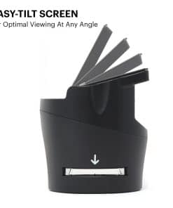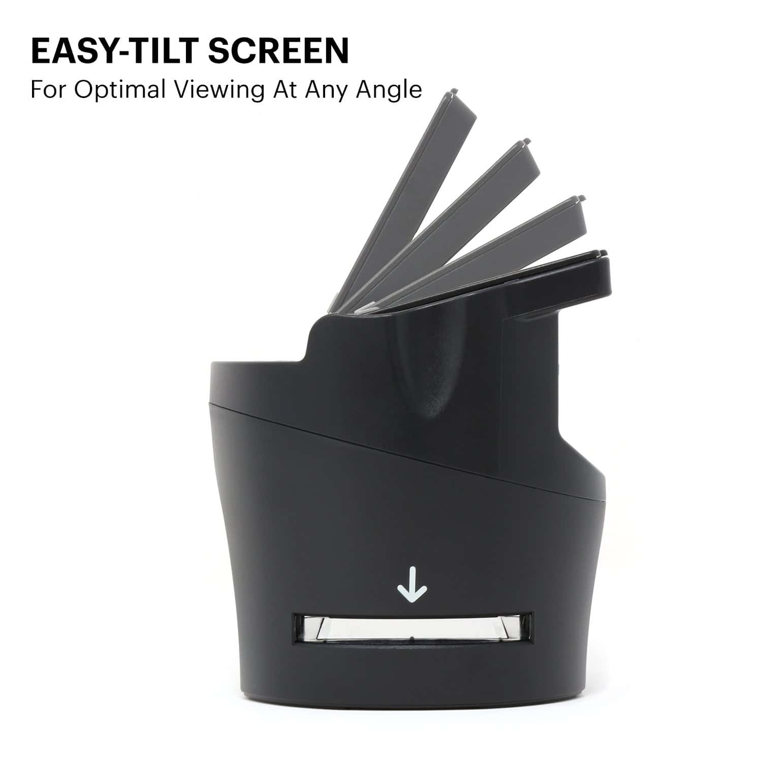 NOTA: Presione el botón de encendido durante 3 segundos para encender el dispositivo. NOTA: El dispositivo se apagará automáticamente después de 10 minutos si no se utiliza. NOTA: Esto no es un escáner de cama plana, hay una cámara de 14MP incorporada en el dispositivo que toma una foto fija de la película, si busca escaneos de alta calidad, busque un escáner de cama plana, este dispositivo está diseñado para escanear rápidamente a través de viejos recuerdos con buena calidad. Este dispositivo solo escanea negativos y película, no fotos. Tenga en cuenta que el escáner solo puede escanear película que haya sido desarrollada previamente, NO puede desarrollar o escanear película sin procesar. También tenga en cuenta que el Super 8 se convierte en imágenes fijas, no en video. También tenga en cuenta que la calidad será inferior a una imagen tomada con una cámara digital de 22MP. Use el cepillo incluido para limpiar la caja de luz del polvo y las motas, para evitar marcas en las imágenes escaneadas. Características: – Pantalla LCD Grande de 3,5″: le ayuda a operar el escáner, ver presentaciones de diapositivas y editar imágenes con funciones de inclinación y brillo ajustable. – Sensor de 14 megapíxeles: captura imágenes con una claridad impresionante en alta definición. – Interpolación integrada: configuración opcional que mejora las imágenes hasta 22 megapíxeles. – 3 Inserciones de diapositivas numeradas: se adaptan fácilmente a sus películas antiguas para una carga segura y conveniente. – 3 Bandejas de adaptadores numeradas: sostienen las inserciones y se acoplan a la unidad para un escaneo rápido. – Botón de inicio: le permite regresar a la página principal de la interfaz. – Botón de captura: guarda la imagen actual o vuelve a la pantalla de vista de captura. – 3 Teclas de función: corresponden con diversas indicaciones en la pantalla para una navegación sencilla de la interfaz.