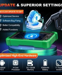 5. Hardware de alto rendimiento: Con tablet Android 10.0, pantallas táctiles de 7.0; CPU Qualcomm Snapdragon de 2 núcleos; WiFi de doble banda de 2.4 GHz y 5 GHz, la tasa de transmisión es 12 veces más rápida que la versión anterior; batería recargable de 6000mAh (hasta 15 horas o más de duración de la batería); almacenamiento de 64 GB para guardar más documentos de vehículos y datos de clientes; procesador de CPU actualizado de 1.4GHz a 1.8GHz octa-core para realizar diagnósticos de manera rápida y eficiente; Tecnología AUTO VIN 12X MÁS RÁPIDA