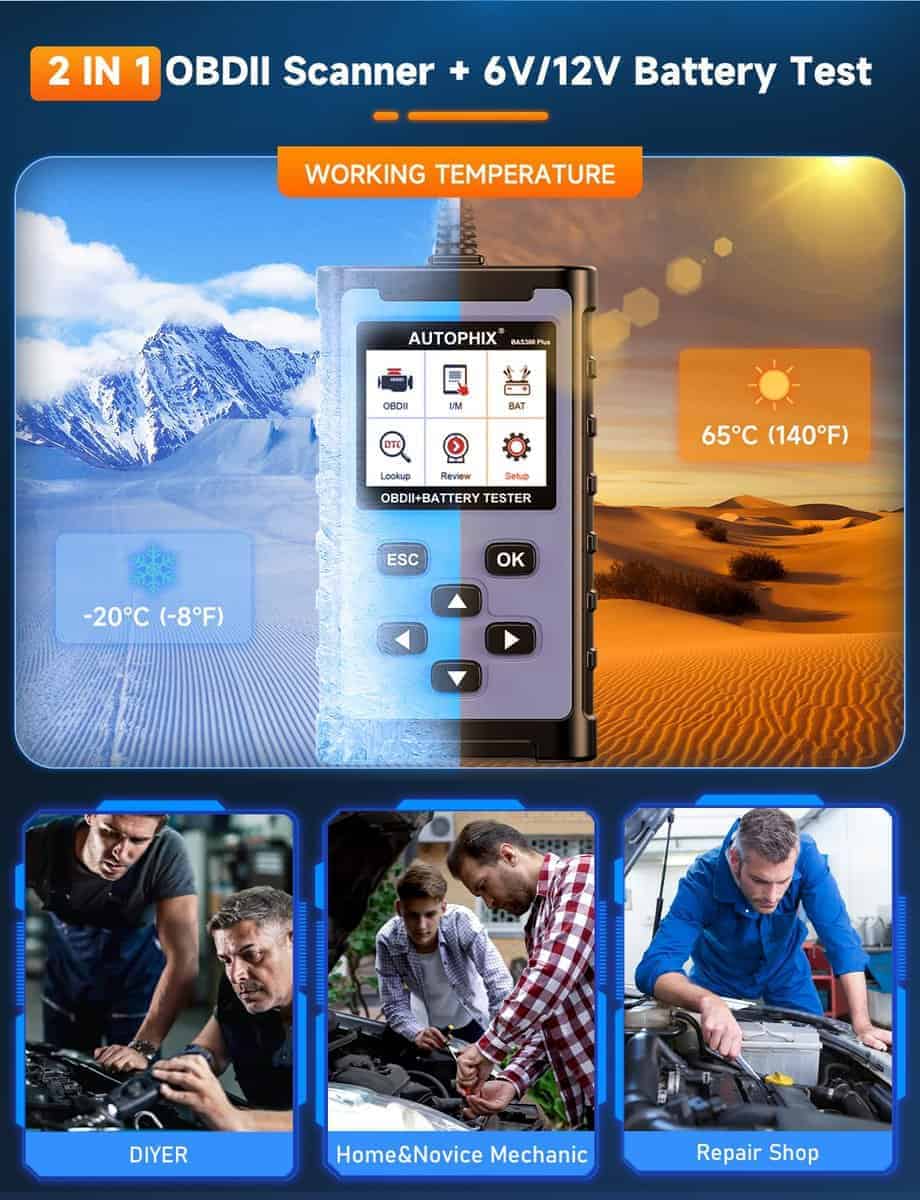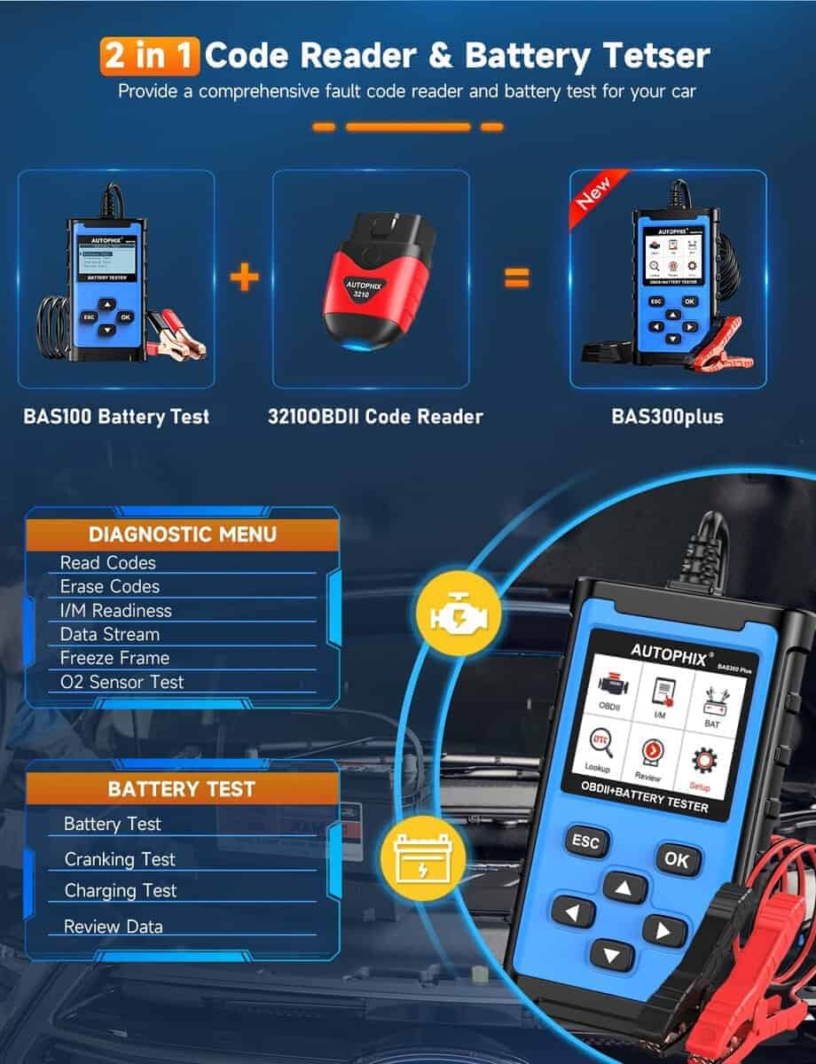 Escáner OBD2 AUTOPHIX 2 en 1 con Probador de Batería,