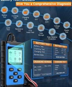 3. Ofrece Análisis Integral de Salud de la Batería: Admite pruebas de batería de 12V. El probador de batería profesional AUTOPHIX BAS300 Plus le ayuda a determinar si la batería de su vehículo está funcionando de manera óptima, identificando rápidamente problemas con la batería de su automóvil, sistemas de arranque y carga en segundos. El probador de batería del automóvil diagnostica datos relacionados con la condición de la batería y evalúa si su sistema eléctrico tiene la potencia para arrancar el motor, evitando averías en carretera y costos de mantenimiento innecesarios, lo que garantiza un viaje en automóvil sin problemas.