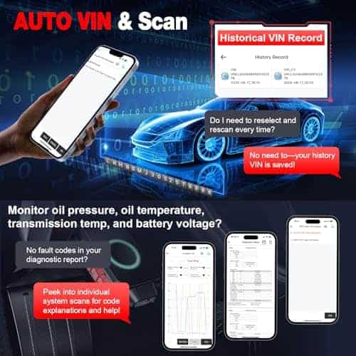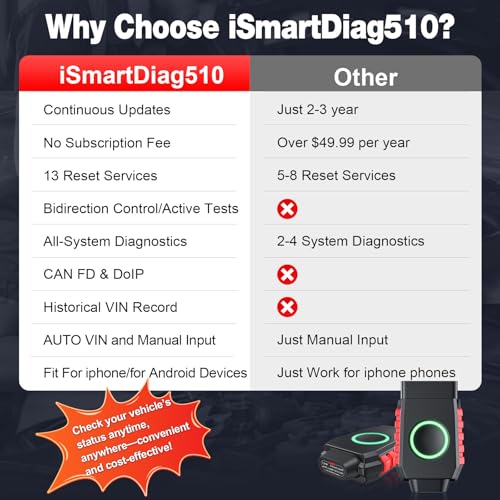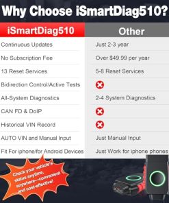1. Escáner bidireccional OBD2 inalámbrico asequible sin tarifas ocultas, actualizaciones de por vida: A diferencia de otros lectores de códigos de coche Bluetooth en este rango de precios, este le brinda un control bidireccional real, compatible con los últimos protocolos CAN FD y DoIP, y viene cargado con funciones como 3000+ pruebas activas, 13 funciones de reinicio rápido, diagnósticos de sistema completo, Modos OBD2 completos, VIN automático, VIN de Historial, 4 Datos en Vivo de PID, Lista de preparación I/M. Perfecto para los entusiastas del bricolaje, los entusiastas de los automóviles y los mecánicos del hogar que desean diagnósticos de nivel profesional. 2. 3000+ Controles Bidireccionales, Diagnósticos Prácticos Hechos Fáciles: Tome el control total con este avanzado escáner OBD2 inalámbrico bidireccional. Le permite ejecutar pruebas activas desde su dispositivo para iPad y para teléfono inteligente activar componentes como el embrague del A/A, ventanas, bomba de combustible, puertas y limpiaparabrisas para localizar rápidamente problemas. Ya sea un entusiasta del bricolaje o un profesional, evite el concesionario y ahorre tiempo y dinero con comandos ECU en tiempo real al alcance de sus dedos. 3. 13 Funciones Esenciales de Mantenimiento para Servir como un profesional: Esta herramienta de diagnóstico de escáner OBD2 le brinda acceso a 13 funciones de servicio imprescindibles, incluida la Calibración SAS, Sangrado de ABS, Reaprendizaje de acelerador, Codificación de inyectores, Reaprendizaje de A/A y más todo a través de un menú fácil de usar. Evite el taller y maneje el mantenimiento rutinario por su cuenta, ahorrando tiempo y costos de reparación. Nota: La disponibilidad de funciones como la sangría automática y el reaprendizaje del acelerador puede variar según el modelo del vehículo. 4. Diagnósticos de nivel OE con CAN FD y DoIP Escaneos más profundos y rápidos: Obtenga diagnósticos de sistema completo como los profesionales. Este escáner OBD2 de todo el sistema puede escanear motor, transmisión, ABS, SRS y más leer/borrar códigos, ejecutar pruebas activas. Admite los últimos protocolos CAN FD y DoIP, lo que lo convierte en una herramienta de escaneo bidireccional perfecta para GM, para GMC, para Cadillac (2020+), para BMW, para Mercedes-Benz y más desde 2018+. Nota: Algunos códigos como fallos de airbag pueden requerir reparaciones antes de poder borrarlos. 5. Conexión rápida de BT para iOS y Android Sin problemas, sin confusión: Convierta su dispositivo en una herramienta profesional de diagnóstico de escáner de coche. Cómo Conectar: 1) Conecte el escáner de códigos OBD2 a la toma OBD2 de su automóvil. 2) Encienda BT (no se conecte a través de la configuración del teléfono). 3) Abra la aplicación iSmartDiag. 4) Toque el ícono de BT en la aplicación para emparejar. 5) Cuando esté emparejado, el LED del dispositivo se vuelve azul. Importante: No empareje desde la configuración de BT de su teléfono, puede causar problemas de conexión. 6. Datos en vivo en tiempo real y Registro de VIN Histórico: el escáner de automóviles inalámbrico para iOS puede mirar hasta 4 PIDs a la vez con datos en tiempo real sobre RPM, velocidad, temperatura del aceite y más, todo mostrado en gráficos limpios y fáciles de leer. La función de VIN de Historial guarda los vehículos escaneados previamente, por lo que no tiene que volver a ingresar los VIN cada vez. Un ahorro de tiempo real para usuarios ocupados. 7. Exploración más inteligente, mejor control: Este lector de códigos actualizado para vehículos admite los 10 modos OBD2 incluidos Leer Códigos, Borrar Códigos, Lista de preparación I/M y más. Obtenga paz instantánea con el chequeo de Lista de preparación I/M antes de salir a la carretera, y use la función de Ayuda de DTC para obtener explicaciones claras de cada código de falla, sin más suposiciones. 8. Amplia compatibilidad con automóviles y soporte multilingüe: El escáner de diagnóstico de automóviles inalámbrico iSmartDiag510 ofrece solución de problemas rápida para más de 10,000 vehículos, incluidos los modelos populares. Aptos para Ford, para Honda, para Toyota, fabricados después de 1996 que utilizan el protocolo OBDII. Con soporte para 17 idiomas, este escáner inalámbrico para autos elimina las barreras del idioma, lo que le permite diagnosticar y mantener su vehículo sin problemas de idioma.