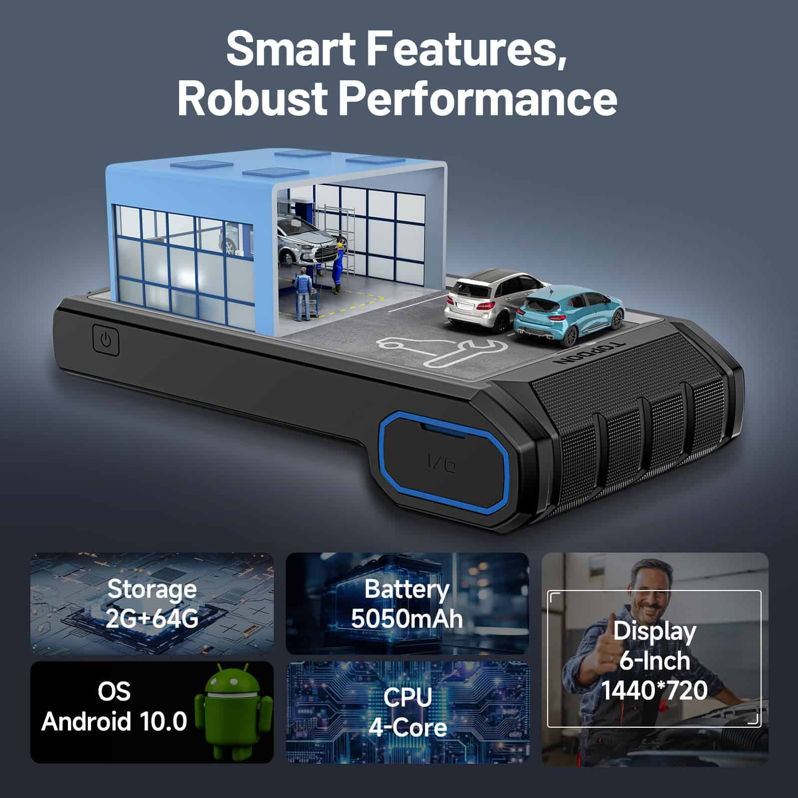 8. Diseño Portátil con Batería de Larga Duración: Ya sea en el taller o en el campo, el diseño portátil y la larga duración de la batería recargable del escáner de diagnóstico automotriz TOPDON AD800BT 2 hacen que sea fácil llevar tus capacidades de diagnóstico donde se necesiten. El diseño ligero mejora la movilidad, asegurando que puedas diagnosticar vehículos sobre la marcha.