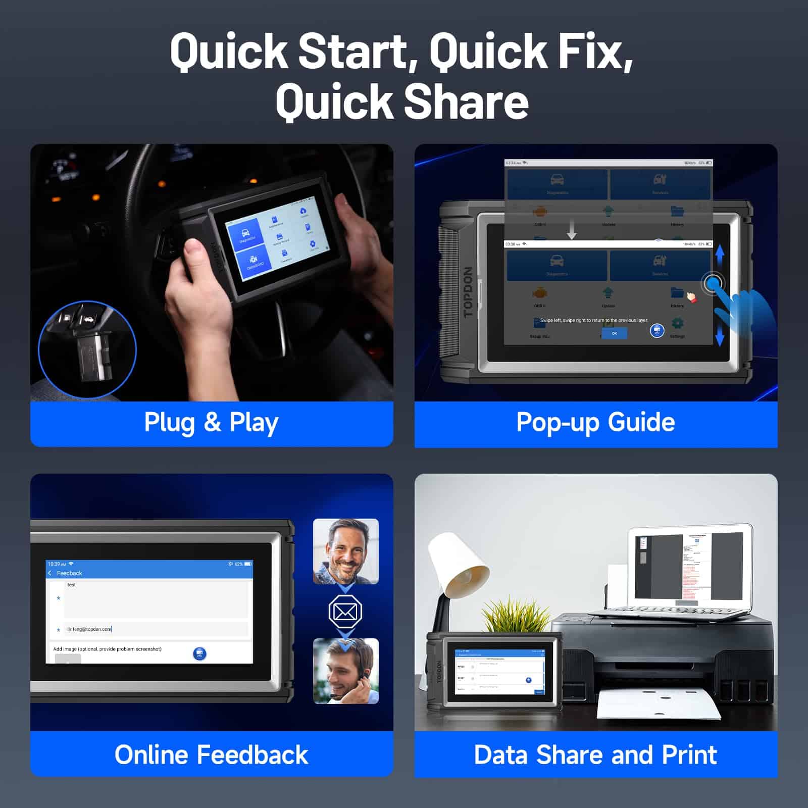 6. Diagnósticos Ultrarrápidos para Reparaciones Eficientes en Tiempo: Diseñado para la velocidad, el escáner de diagnóstico TOPDON AD800BT V2.0 ofrece resultados de escaneo y diagnóstico rápidos, reduciendo el tiempo de inactividad del vehículo y permitiéndote atender a más clientes de manera eficiente. Su procesador de alto rendimiento garantiza que no tengas que esperar resultados.