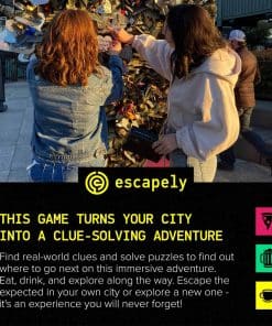 ESCAPE ROOM ÚNICO EN SU TIPO: Una parte búsqueda del tesoro en equipo, una parte escape room y una parte recorrido urbano, todo diseñado específicamente para tu ciudad. Busca pistas y resuelve enigmas con tus amigos mientras sigues emocionantes historias, todo a poca distancia caminando.