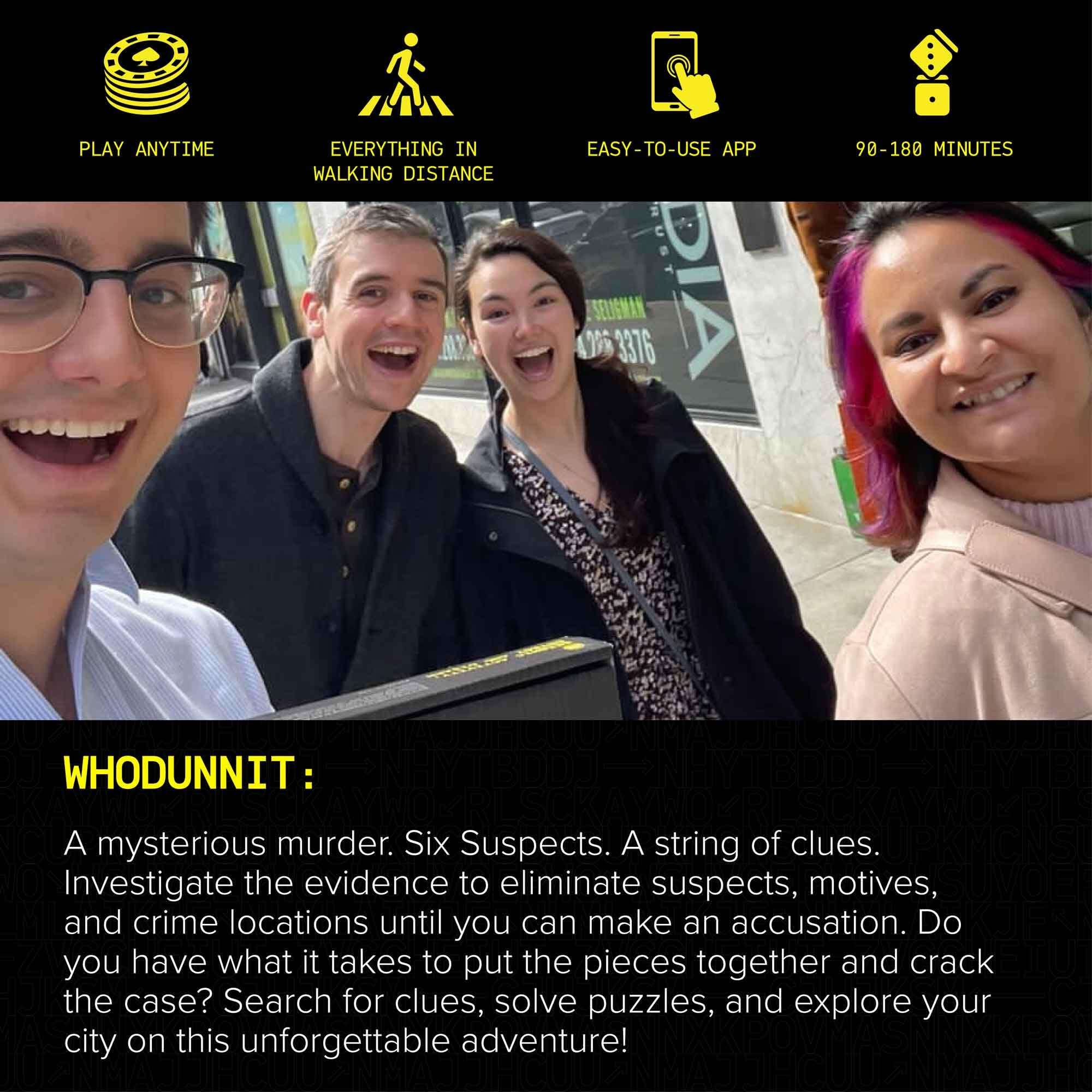 IMPORTANTE: Si has jugado una aventura de Whodunnit en otras ciudades, la historia del escape room es la misma, algunos enigmas serán familiares, pero las pistas y ubicaciones son únicas. El juego de Washington D.C. se encuentra en Adams Morgan. ¿Estás listo para este caso sin resolver como un desafío en grupo?