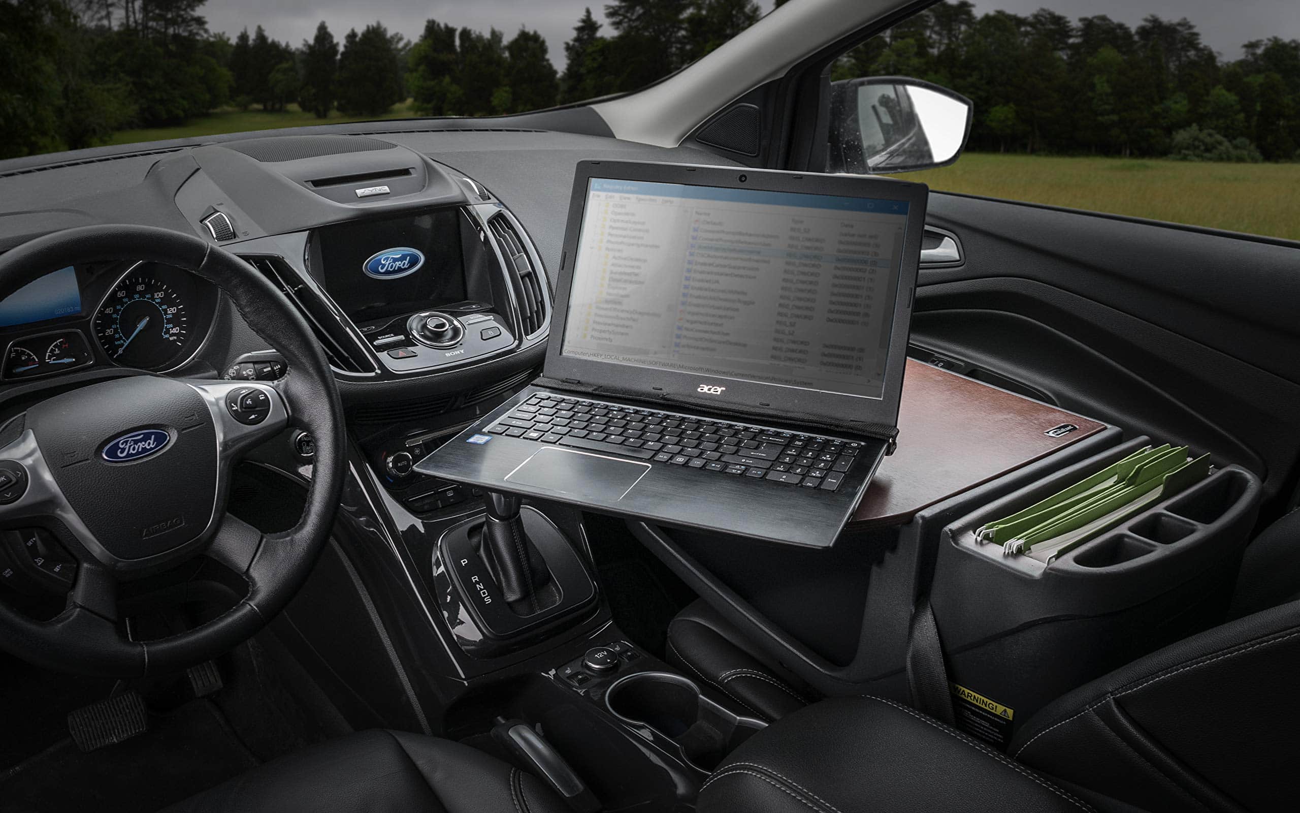 1. Fabricado en EE. UU. y diseñado para ser utilizado con una computadora portátil en el vehículo, con almacenamiento de archivos fácilmente accesible en todo momento, lo que lo convierte en una herramienta ideal para la oficina móvil.