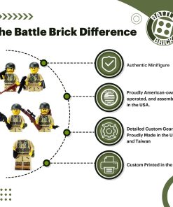 El Escuadrón Completo de Soldados del Ejército de EE. UU. de Battle Brick incluye torsos directamente impresos de alta calidad, cascos personalizados y armas. Hechos con Minifiguras genuinas. ¡La adición perfecta a cualquier colección de minifiguras!