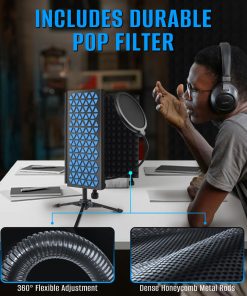 4. Incluye Filtro Anti-Pop de Regalo Se incluye un filtro anti-pop con una abrazadera giratoria ajustable, diseñado para proteger tu micrófono de la corrosión por saliva mientras asegura el escudo en su lugar sin causar arañazos. Esta adición considerada protege la longevidad y calidad del sonido de tu micrófono.
