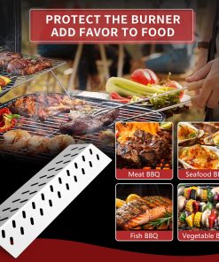 4. Buen Rendimiento: Evita que los alimentos se expongan directamente a la llama y distribuye el calor de manera uniforme; Calienta tus alimentos de manera uniforme para obtener un sabor delicioso; Protege el quemador de tu parrilla Bull de goteos de aceite.