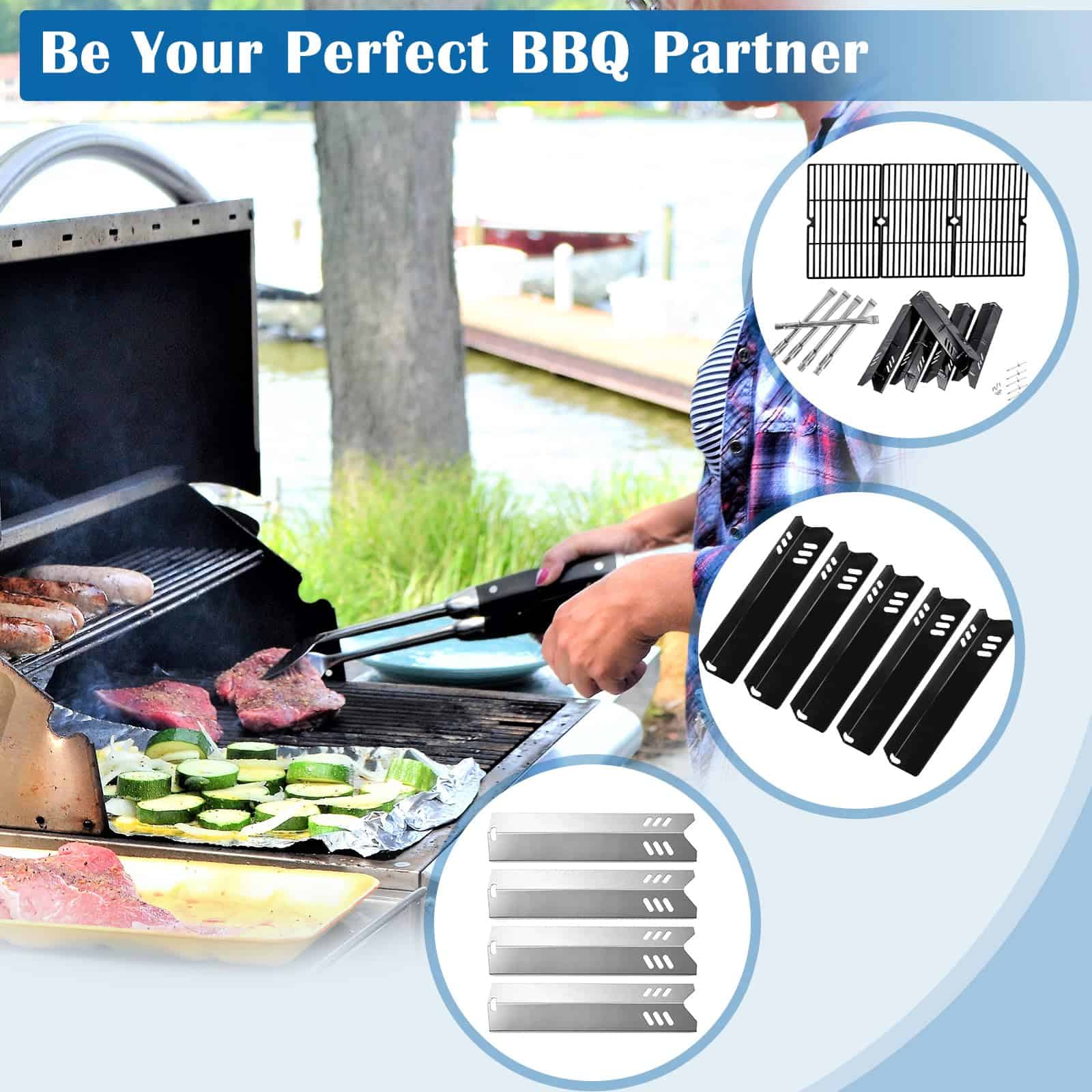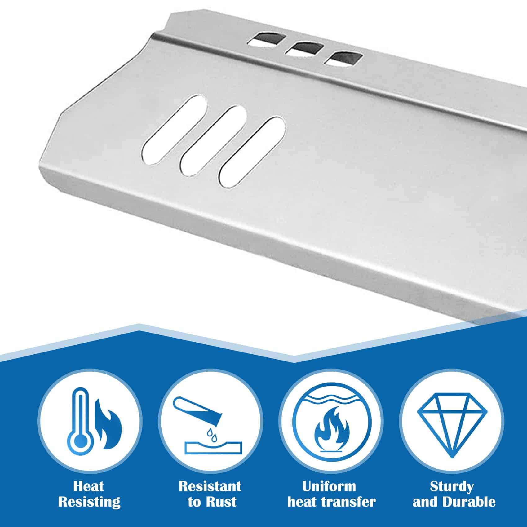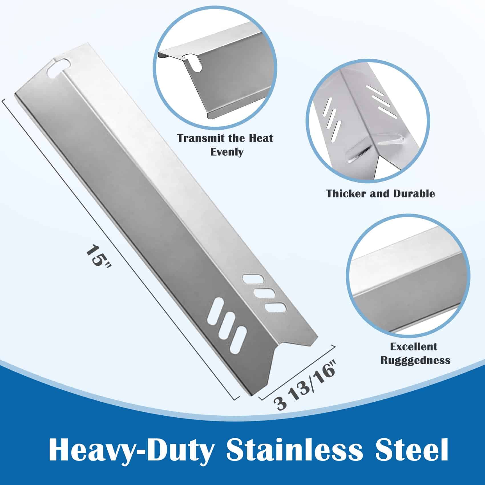 El Escudo de Placa de Calor para Parrillas Dyna-Glo es fabricado con acero inoxidable 304 duradero, diseñado para adaptarse a varios modelos de parrillas Dyna-Glo de 4, 5 y 6 quemadores. Este kit de reemplazo incluye 4 escudos de placa de calor con dimensiones de 15″ x 3 13/16″ cada uno, garantizando una distribución de calor uniforme y previniendo los brotes de llama durante la cocción. Además, estos escudos de placa de calor son compatibles con marcas como Backyard, Uniflame, Better Homes & Gardens, Outdoor Gourmet, Montana Grill, Tera Gear y Phoenix UK, entre otras. Con una construcción premium y un ajuste preciso, estos escudos están diseñados para resistir las demandas de un asado regular, brindando un rendimiento confiable y prolongando la vida útil de tu parrilla. Disfruta de resultados consistentes y deliciosos en cada uso gracias a la distribución uniforme de calor que ofrecen estos escudos de placa de calor. Nuestro equipo de atención al cliente está comprometido con tu satisfacción, ofreciendo un excelente soporte y asistencia para tus necesidades de reemplazo al aire libre.
