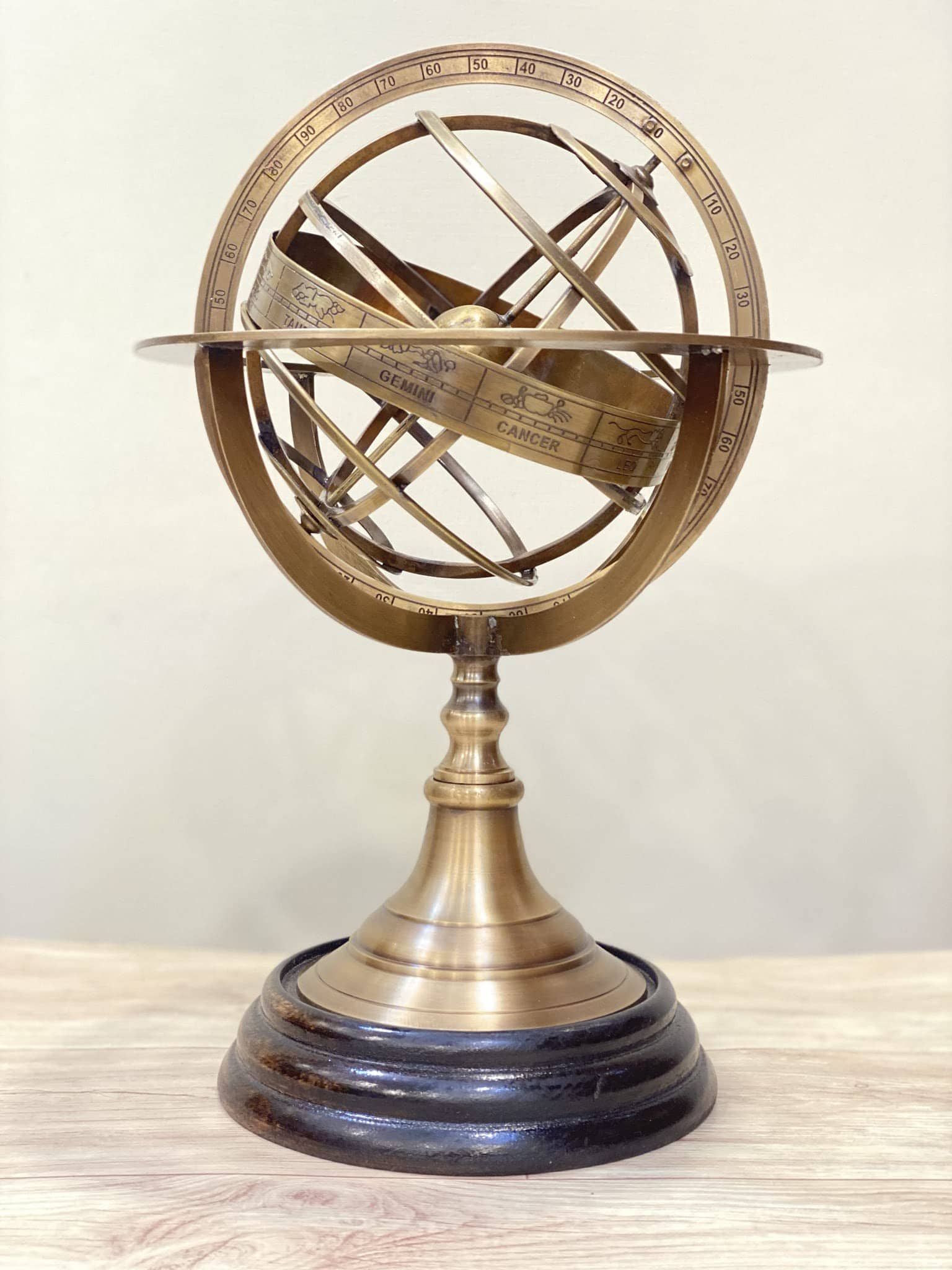 Esfera Armilar del Zodiaco de AnNafi� con Base de Madera de