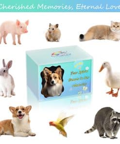 Urnas con Acabado Mate de Degradado Estilo Cristal – Un Memorial Intemporal para Mascotas Queridas Esta elegante urna para mascotas, perfecta tanto para gatos como para perros, mezcla un diseño de degradado mate con sofisticación similar a la de un cristal. Ideal para aquellos que buscan ‘urnas para cenizas de gato’ o ‘urna para perro’, ofrece un tributo universal a tu mascota querida. Personalizado y Sentimental: Con un marco de foto magnético, personaliza esta urna como un memorial único. Se ajusta a aquellos que buscan ‘urnas para cenizas de gato personalizadas’ o como parte de colecciones de ‘memoriales y funerarias para perros’, manteniendo vivos los recuerdos. Duradero y Respetuoso: Fabricado para la durabilidad, esta urna sirve como un lugar de descanso respetuoso, adecuado como ‘urnas para cenizas de perro’ o ‘urnas para cenizas de perros’. Conexión Emocional: Más que un simple contenedor, simboliza el amor eterno y los recuerdos compartidos con tu mascota, resonando profundamente con los dueños de mascotas. Versátil para Todas las Mascotas: Esta urna está diseñada para honrar a mascotas de todos los tamaños, asegurando un memorial adecuado para cada compañero animal. Esta urna para mascotas no es solo una urna; es un tributo amoroso, capturando la esencia de tu vínculo con tu mascota, para siempre atesorado en tu corazón.
