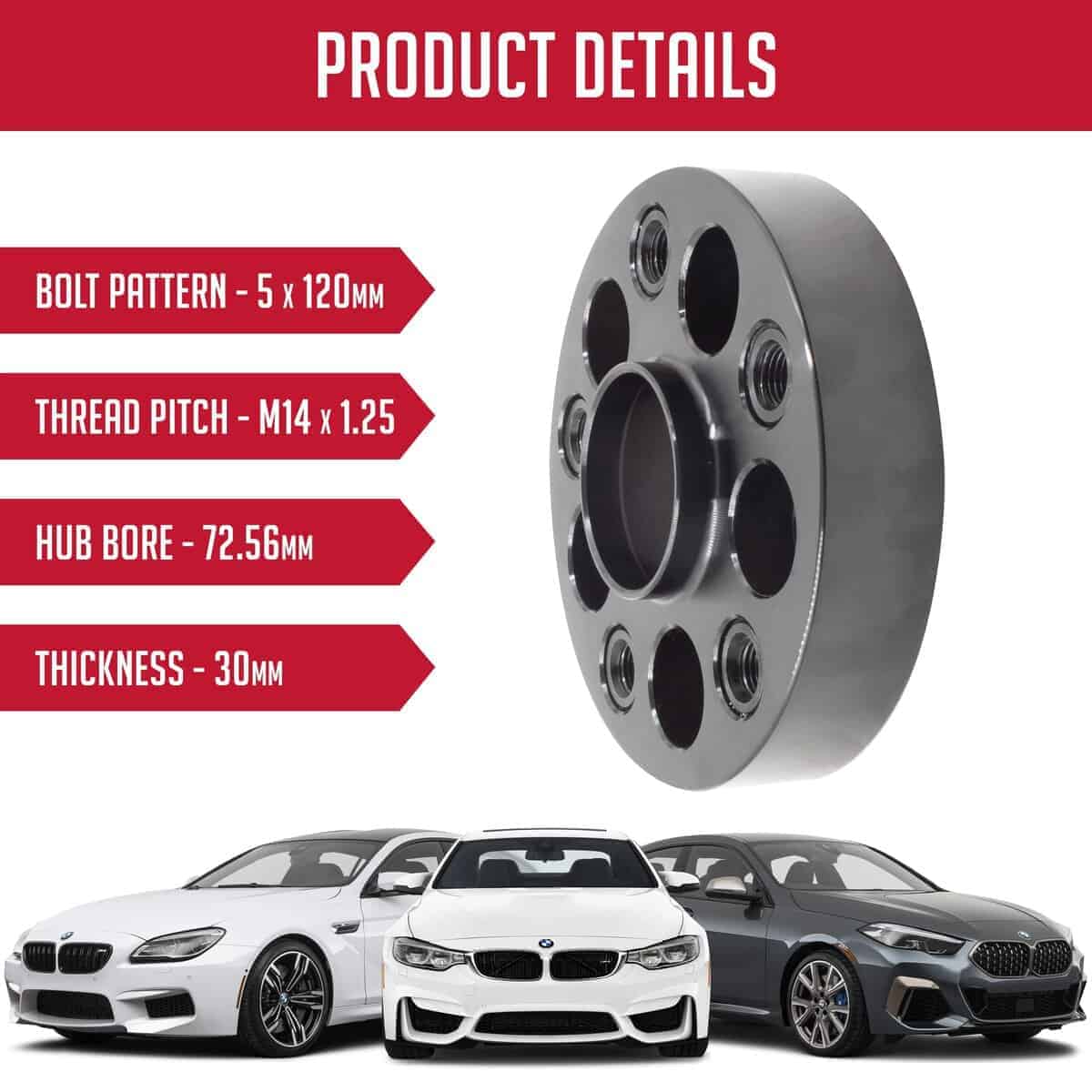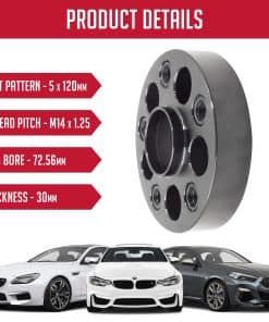 Wheel Accessories Parts 1 Pc Hub Centric European Wheel Spacer with 30mm Thick 5x120mm PCD 72.56mm Hub M14 x 1.25 Black Bolts Fits BMW 2, 3, 4, 5, 6, 7 Series M2, M3, M4, M5, M6, X3, X4, Z4