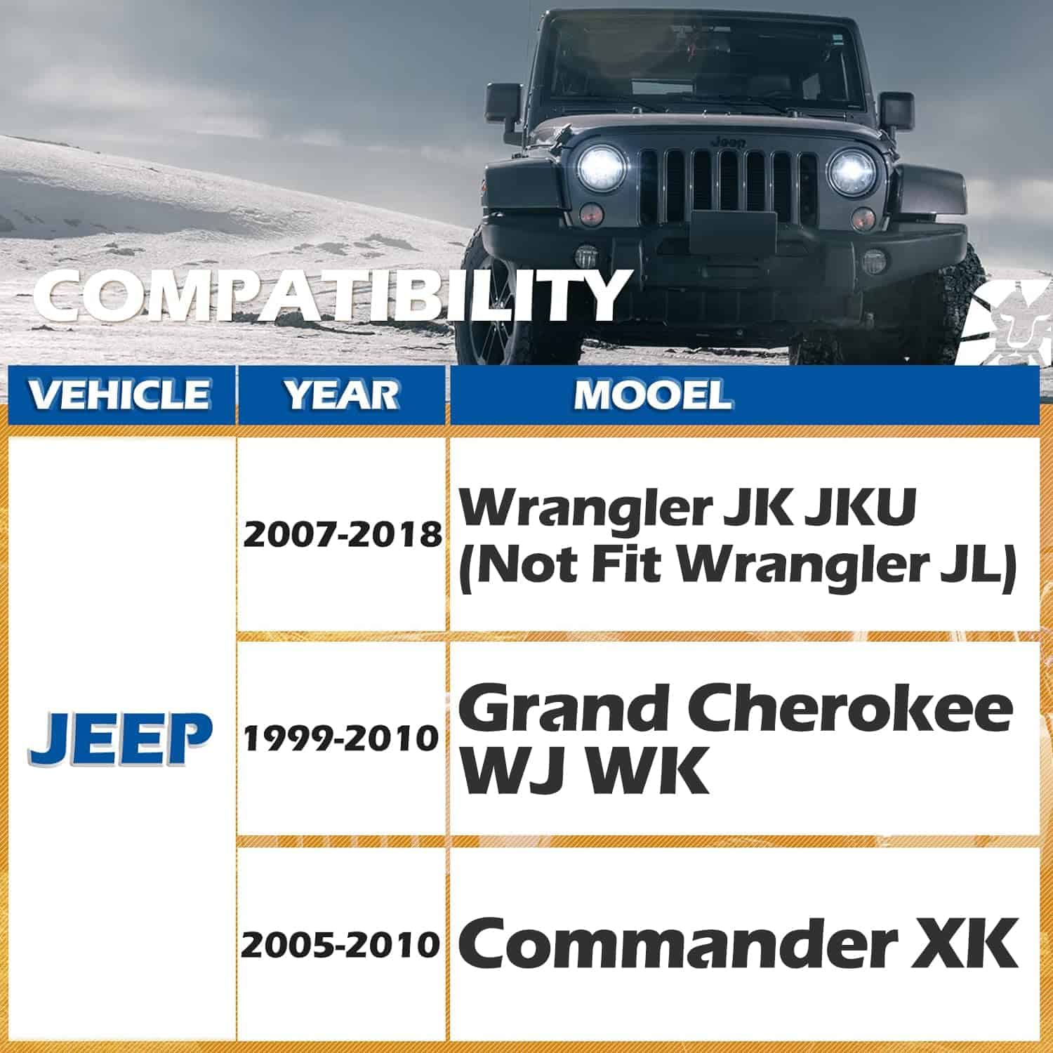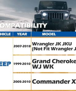 2. Compatibilidad con Jeep 2007-2018 Wrangler JK JKU (No para 2018 2019 JL), 1999-2010 Grand Cherokee WJ WK, 2005-2010 Commander XK. NOTA: No es compatible con Wrangler JL.