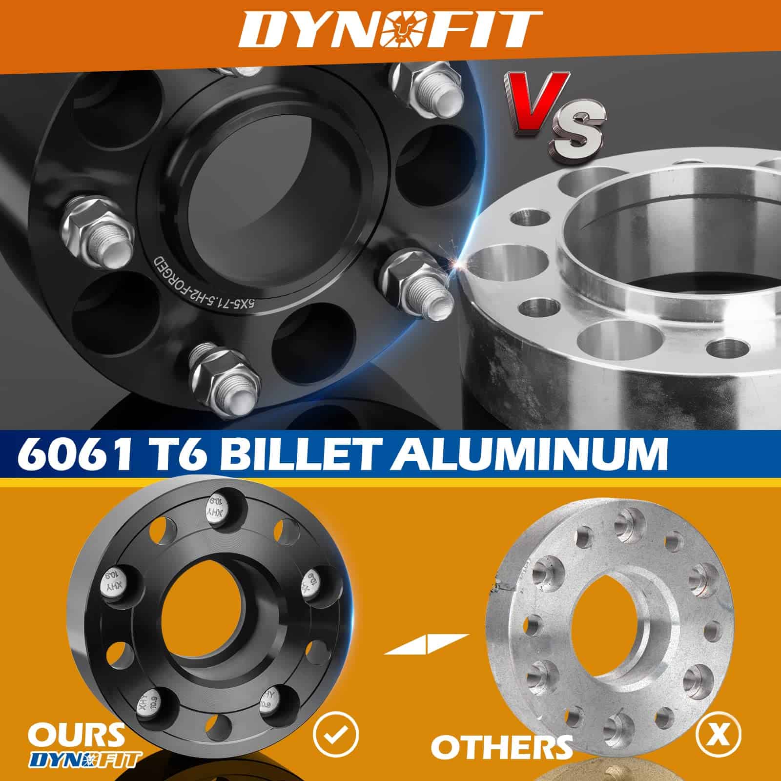 3. Bien Hechos Los espaciadores de rueda Dynofit están hechos de aluminio 6061-T6 anodizado negro ligero mediante métodos de fabricación forjada. Las propiedades mecánicas de las piezas forjadas son superiores a las de las piezas fundidas. No se romperán literalmente. Los pernos tratados con ‘DACROMAT’ (Aprobado por el test SGS) tienen una mayor dureza y resistencia al óxido. Procesamiento automático CNC, aumenta la dureza y resistencia a la corrosión del material.