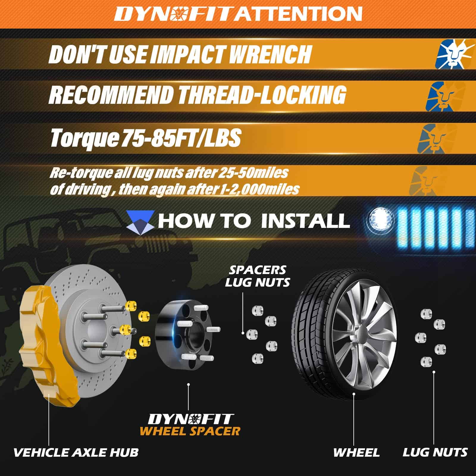 7. Promesa de Marca Es mejor usar un poco de pegamento en los espaciadores, se recomienda alineación después de la instalación. Garantía de 12 meses con un servicio postventa sin preocupaciones. También ofrecemos «DEVOLUCIÓN DE 30 DÍAS» Esperamos que dynofit pueda hacer que su experiencia de compra sea agradable. Por favor, vuelva a verificar la compatibilidad de su vehículo (año/marca/modelo) en la descripción/fotos del producto antes de comprar los espaciadores de rueda.
