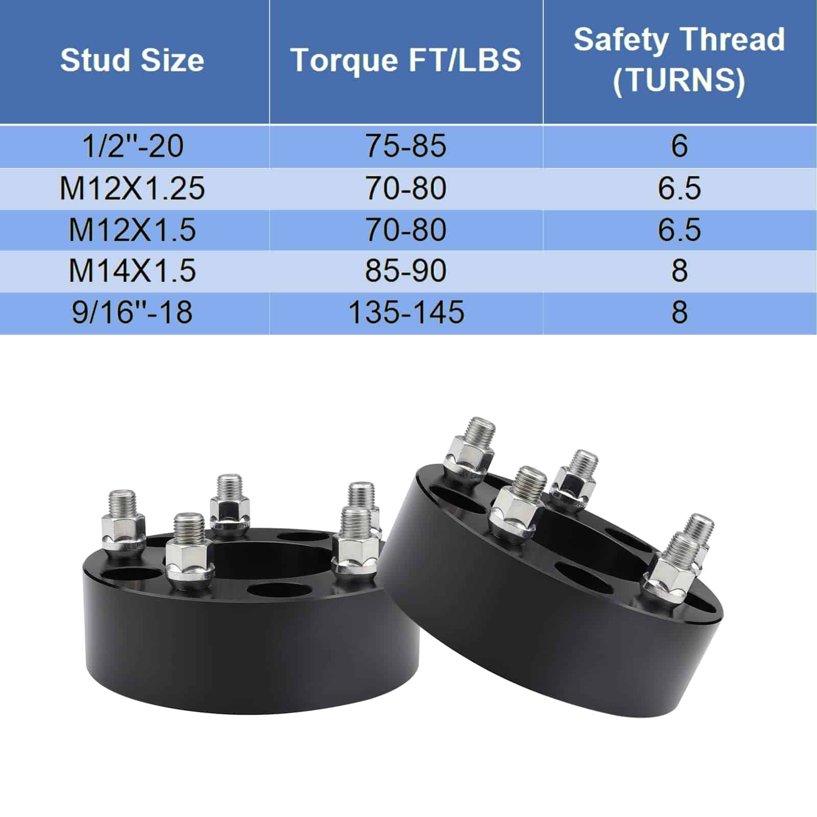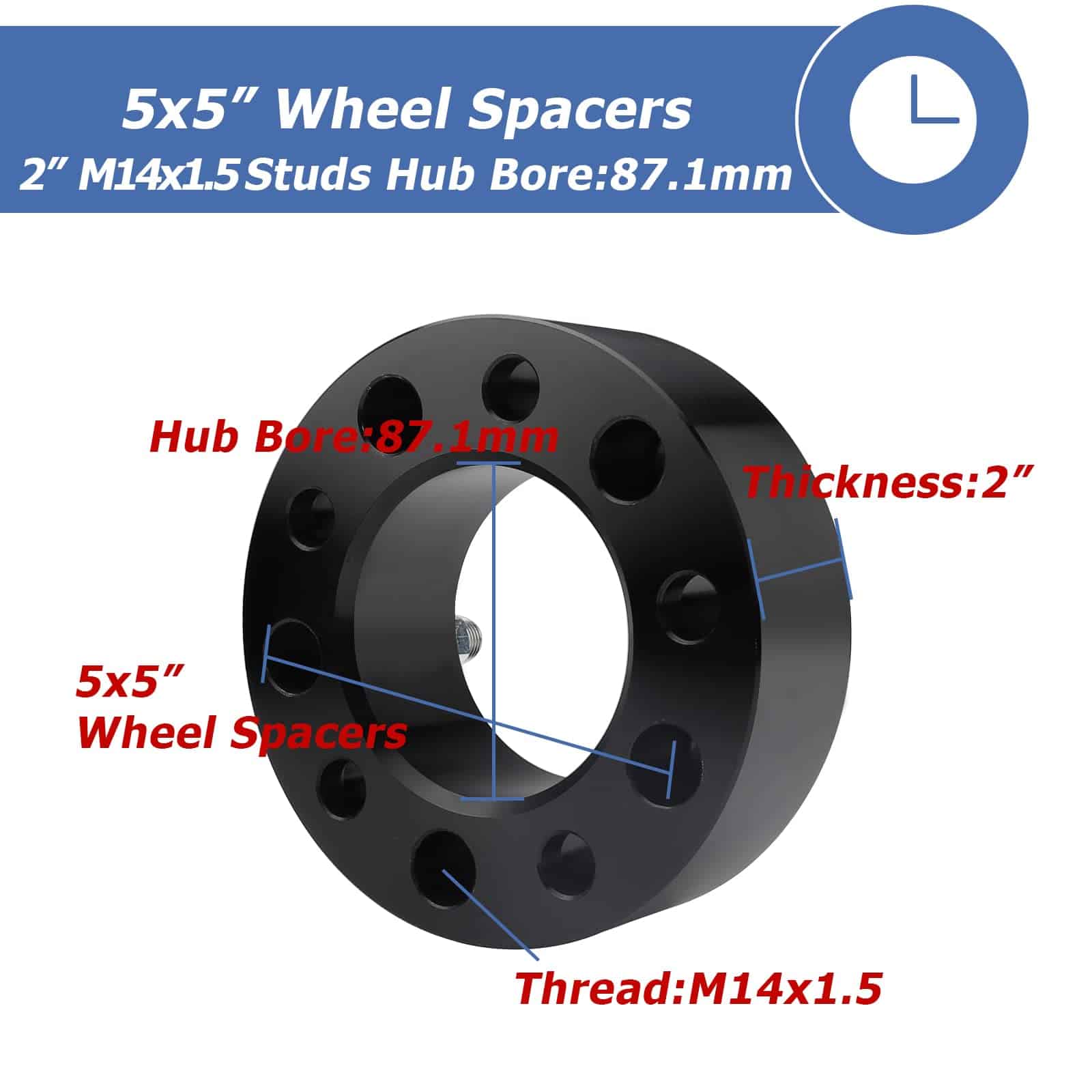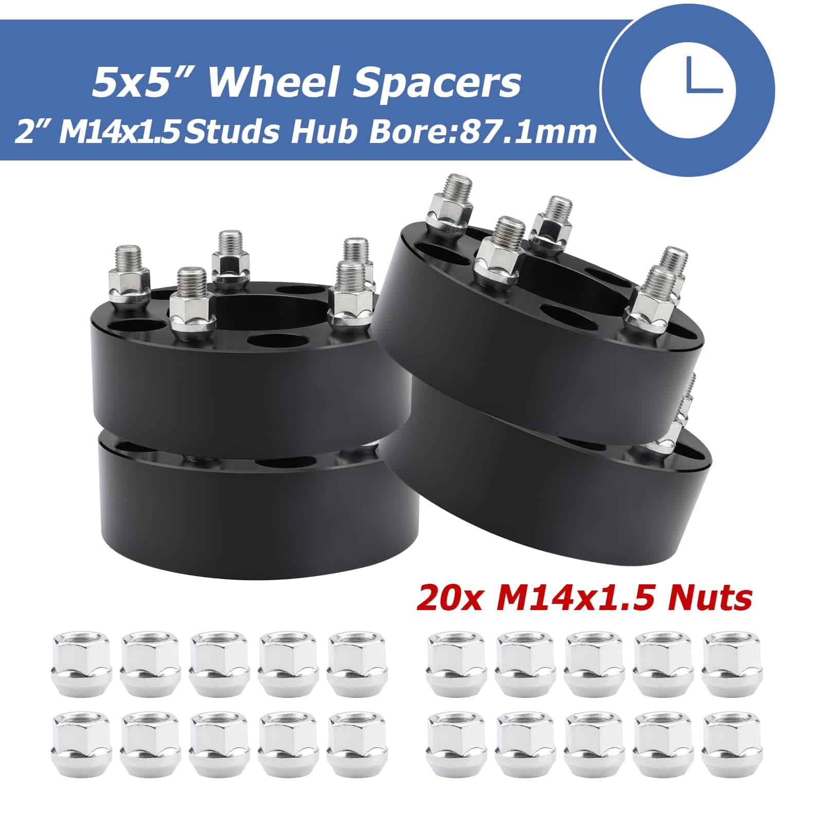 Espaciadores de Rueda 5×5 (5×127) de 2″ de Grosor, Diámetro central de 87.1mm con Pernos de 14mmx1.5