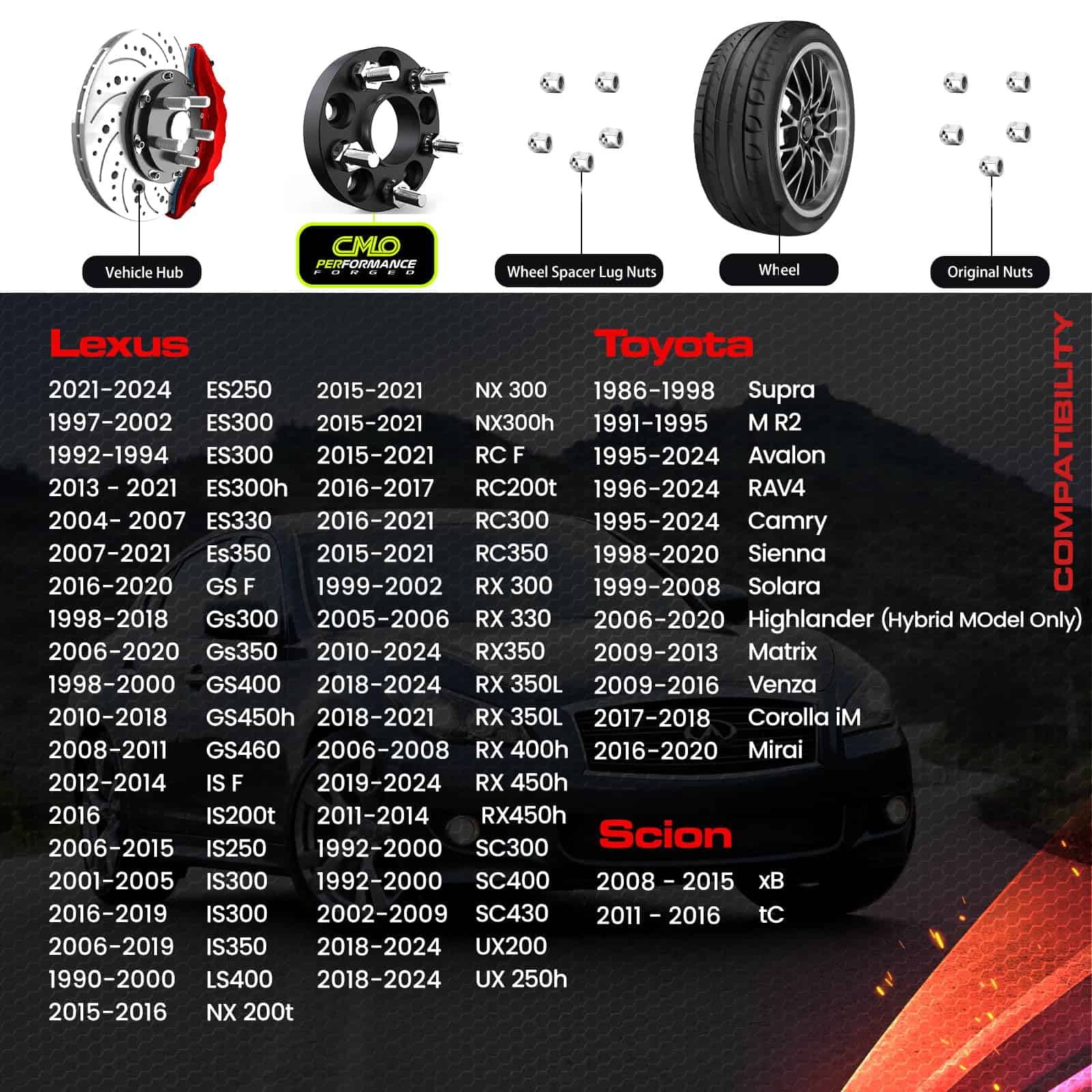 Los espaciadores de rueda Customadeonly están fabricados con aluminio de grado 6061 T-6 de alta resistencia y durabilidad. Montados con pernos de acero al carbono clase 10.9 (SAE grade 8) tratados térmicamente. Nuestros espaciadores son creados mediante un proceso CNC automatizado en nuestro centro de mecanizado de 4 ejes, garantizando calidad y precisión en cada producto. Respaldados por una garantía de 3 AÑOS contra defectos de funcionamiento. Asegúrese de que los pernos de rueda de fábrica no sobresalgan la superficie de los espaciadores. En caso afirmativo, deberá acortar los pernos de fábrica y asegurarse de que las ruedas tengan los agujeros abiertos entre los agujeros de montaje.