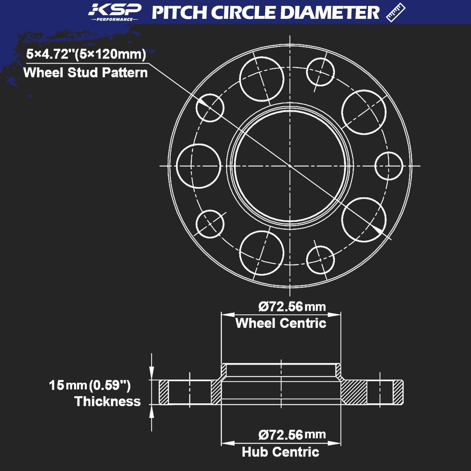 Espaciadores de Rueda KSP 5X120mm, 2PCS 15mm Hubcentric