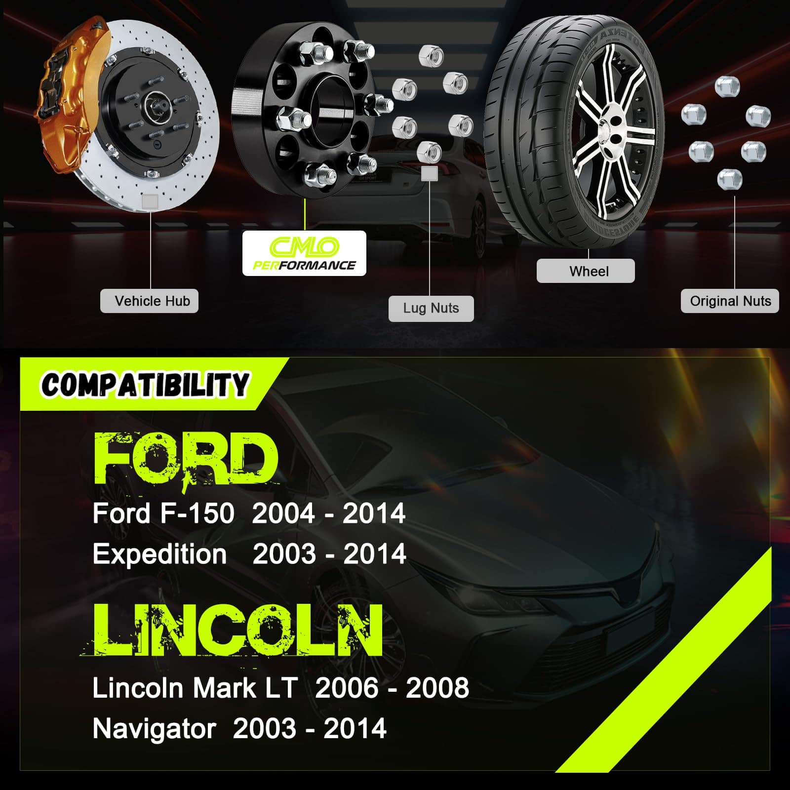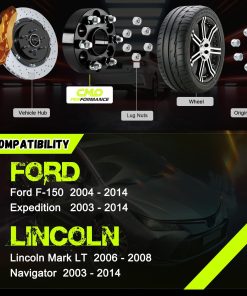 Los espaciadores de rueda / adaptadores Customadeonly están hechos para la corrección del offset, mejorando el rendimiento en el manejo y realzando la apariencia general. Los espaciadores de rueda Customadeonly están fabricados con aluminio de alta calidad 6061 T-6, conocido por su resistencia y durabilidad. Los espaciadores están ensamblados con pernos de acero al carbono clase 10.9 (grado 8 SAE) tratados térmicamente. Los espaciadores de rueda Customadeonly también cuentan con nuestra garantía de reemplazo de producto de 2 años contra cualquier defecto funcional. Compatibles con Ford F-150 2004-2014 (sólo 6 tornillos), Expedition 2003-2014 (sólo 6 tornillos), Lincoln Mark LT 2006-2008, Navigator 2003-2014 (sólo 6 tornillos).
