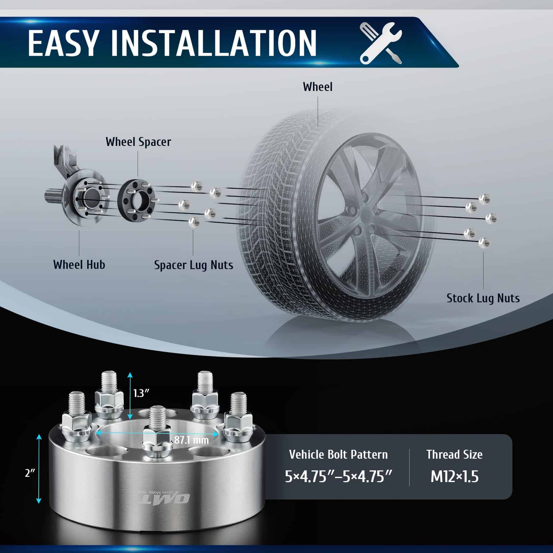 Espaciadores de Rueda OMT 5×4.75, 2 Pulgadas con Pernos