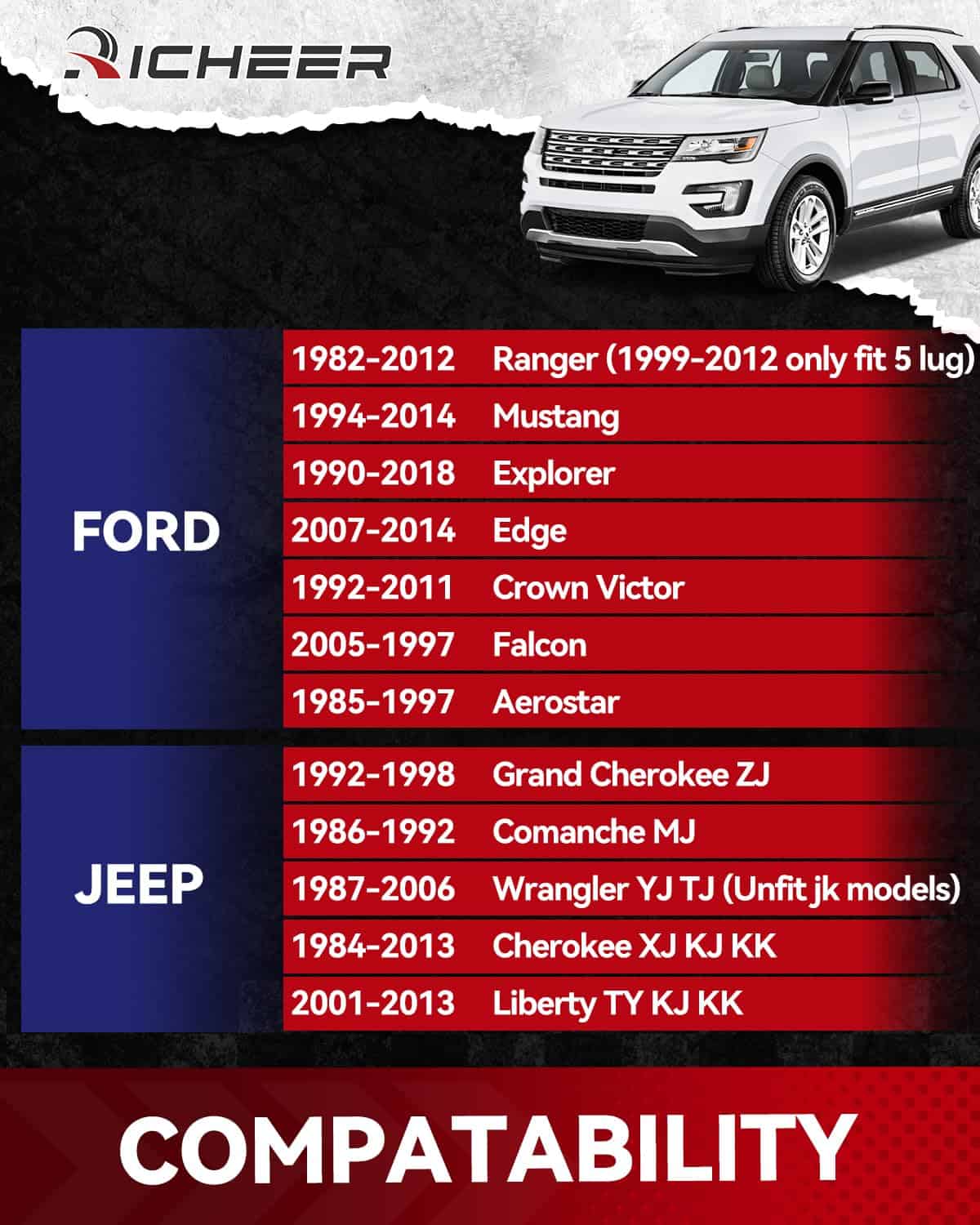 Espaciadores de rueda Richeer 5×4.5 para YJ TJ XJ KJ KK ZJ