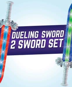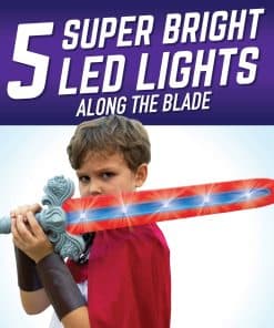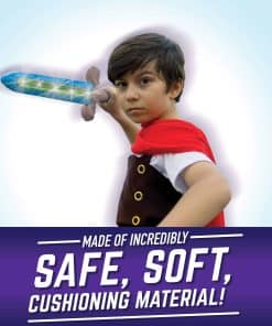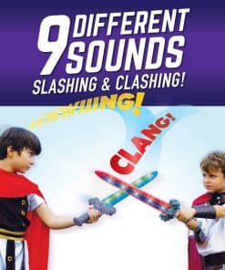 La espada de duelo de Geospace es la primera espada de estilo medieval súper segura y de última tecnología que emite sonidos realistas de silbidos y choques para mejorar la acción de juego realista! La espada detecta el movimiento mientras los niños la agitan en el aire y cada vez que la espada aterriza un golpe. Responde instantáneamente con hasta 9 sonidos realistas diferentes y aleatorios de espada silbando o chocando. ¡Cada vez que la espada de duelo es golpeada, automáticamente emite varios sonidos de choque! Una característica especial del geosword es el nuevo material especial de polímero compuesto que rodea el borde exterior, por lo que es súper resistente, pero totalmente seguro para jugar. ¡Incrustado en el cuerpo de la espada de duelo hay luces LED súper brillantes que crean efectos especiales durante el juego, de día y de noche! Para edades de 4 años en adelante.