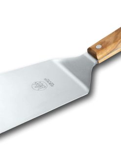 La belleza natural de la madera de olivo brilla a través del mango sin ningún tratamiento ni pintura, lo que permite que la madera cambie de color con el tiempo y se vuelva aún más única. Las ligeras variaciones estéticas que puedan surgir en el mango de madera son características de la madera maciza y no afectan el rendimiento de la espátula.