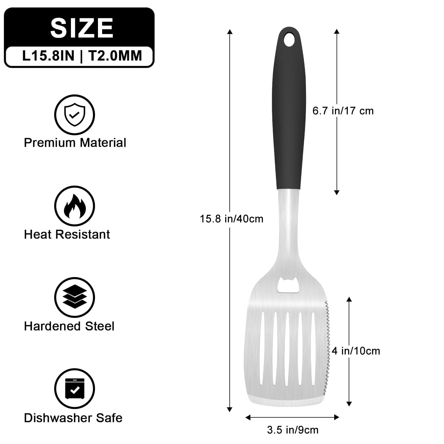 Espátula de Parrilla de Acero Inoxidable POTWIY de 15,8»