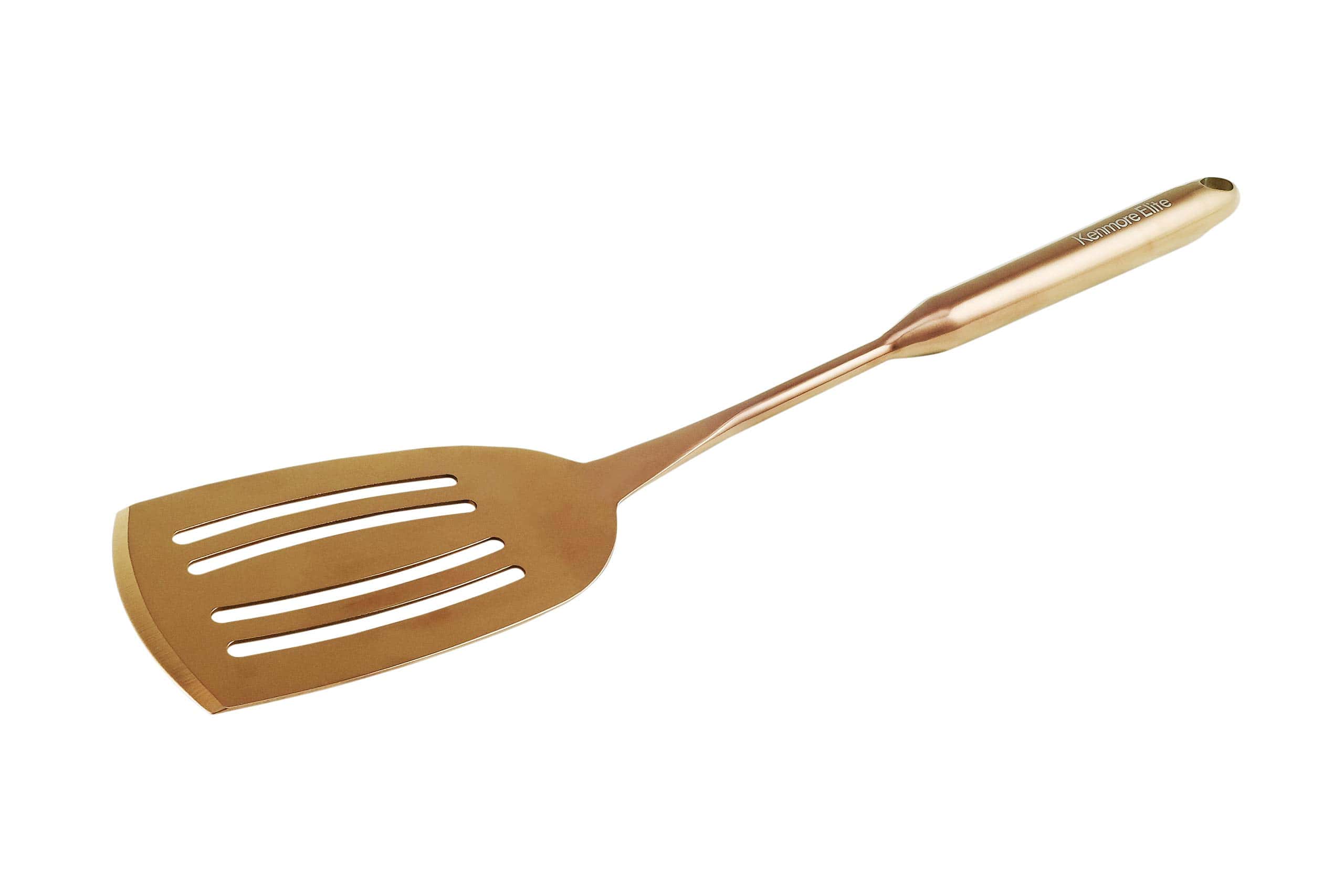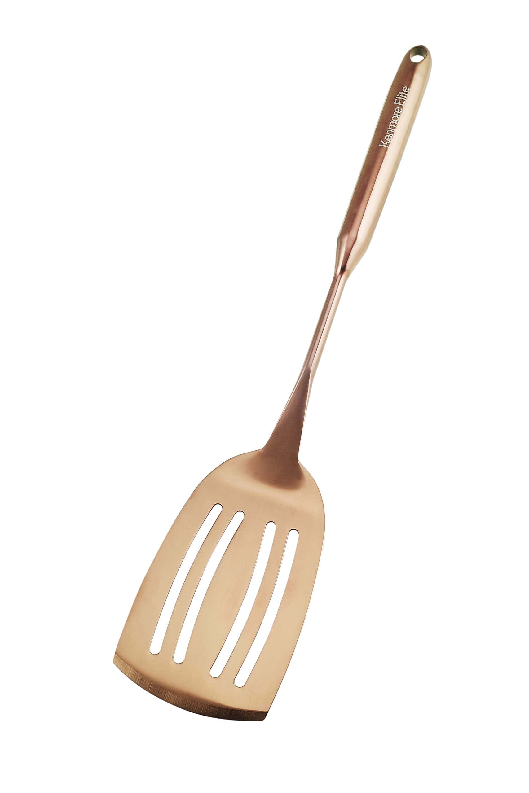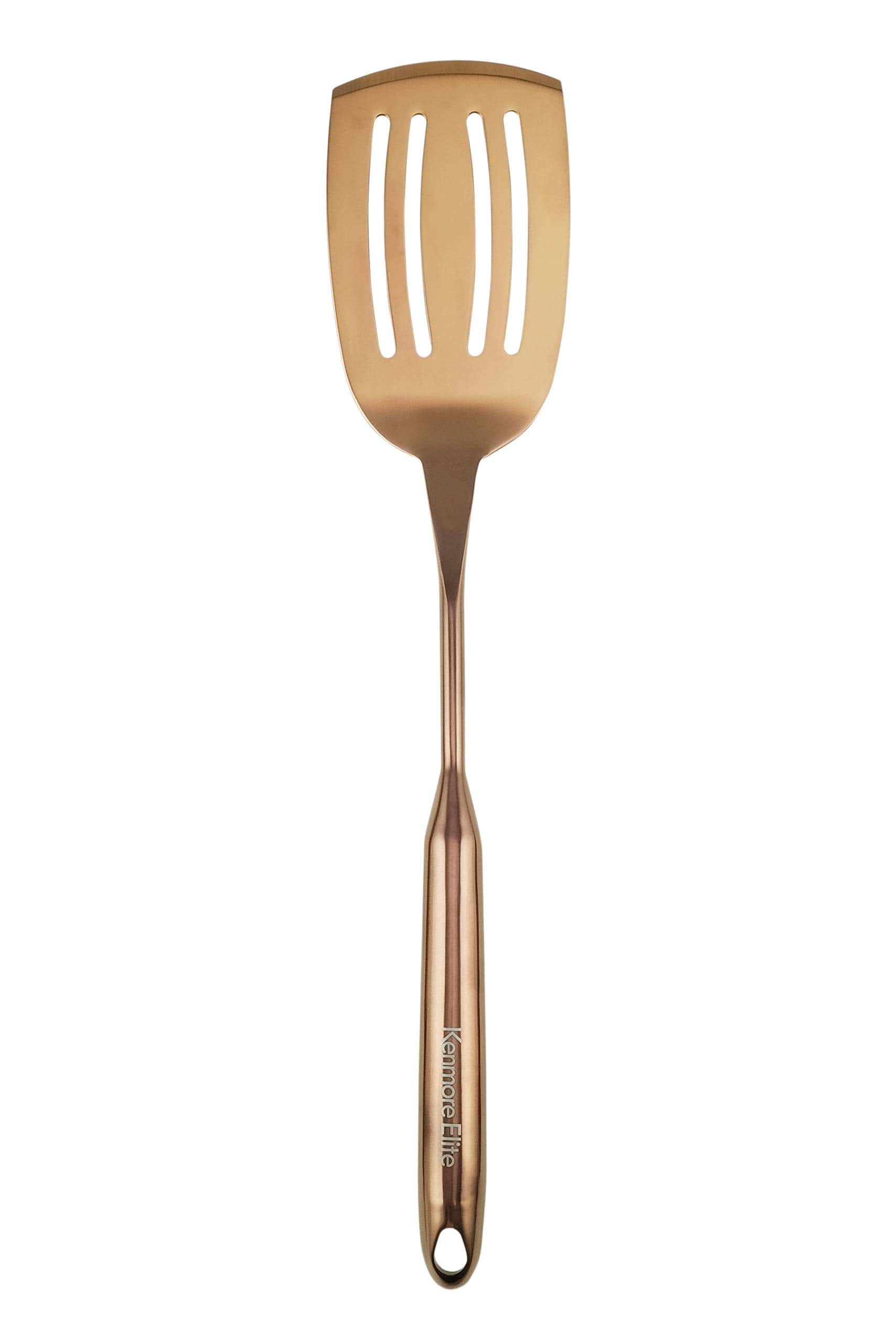 Enciende la parrilla y comienza a cocinar con la Espátula de Parrilla de Oro Rosa Kenmore Elite. Esta versátil espátula es el complemento perfecto para tu equipo de parrilla y es ideal para cocinar tanto en interiores como en exteriores. El diseño liso y ranurado facilita voltear y reorganizar los alimentos en la parrilla. El mango incluye una abertura integrada para que puedas colgarlo en tu parrilla para un acceso rápido y conveniente. La construcción de acero inoxidable resistente con recubrimiento de titanio resistente a los arañazos está diseñada para una durabilidad duradera, mientras que el acabado en oro rosa agrega un toque de estilo. Esta espátula mide 18.3 x 3.7 x 1.4, lo que la hace perfecta para cualquier parrilla o cocina.