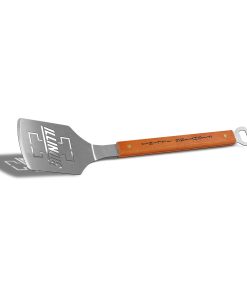 Toma el tiempo de la parrilla con confianza ganadora utilizando una espátula de parrilla clásica con licencia oficial. El nombre del equipo está estampado en el mango de arce duro remachado con latón, el logotipo está cortado con láser a través de la hoja de acero inoxidable resistente, y el abridor de botellas integrado agrega el toque final. Un regalo perfecto para cualquier fan y lo último en accesorios para tailgating.