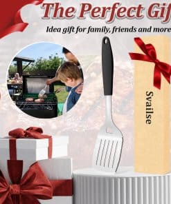La Espátula de Parrilla Svailse 3-en-1 es la herramienta esencial para tu parrilla al aire libre. Está fabricada con acero inoxidable premium de alta calidad, con un grosor de 2.0 MM que garantiza su durabilidad y resistencia. Su peso y tamaño ideales proporcionan un agarre firme que te permite voltear y cortar alimentos con facilidad.