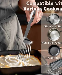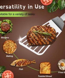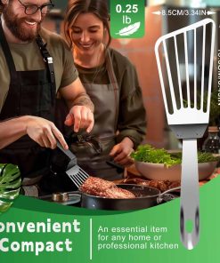 Espátula de pescado de acero inoxidable, girador de pescado de metal, espátulas metálicas para uso en cocina, diseño de borde delgado ideal para el volteo y el vuelco de alimentos. Características del producto: 1. Acero inoxidable 304, grado alimenticio, resistente al óxido, resistente, mangos ergonómicos cómodos. 2. Espátula ranurada que permite que escurra la grasa. 3. Diseño biselado para deslizarse fácilmente debajo de los alimentos cada vez. 4. Extremo con borde para cortar funcional durante la cocción. 5. Cabeza delgada y flexible que es ideal para levantar, voltear y darle la vuelta al pescado y otros alimentos delicados. 6. Apta para lavavajillas y lazo para colgar que facilita el almacenamiento. 7. Puede usarse con todo tipo de utensilios de cocina, incluidos los antiadherentes. Especificaciones del producto: Material: Acero inoxidable Tamaño: 12 pulgadas, 13 pulgadas Color: Plateado Contenido del paquete: 1 Espátula de pescado de acero inoxidable
