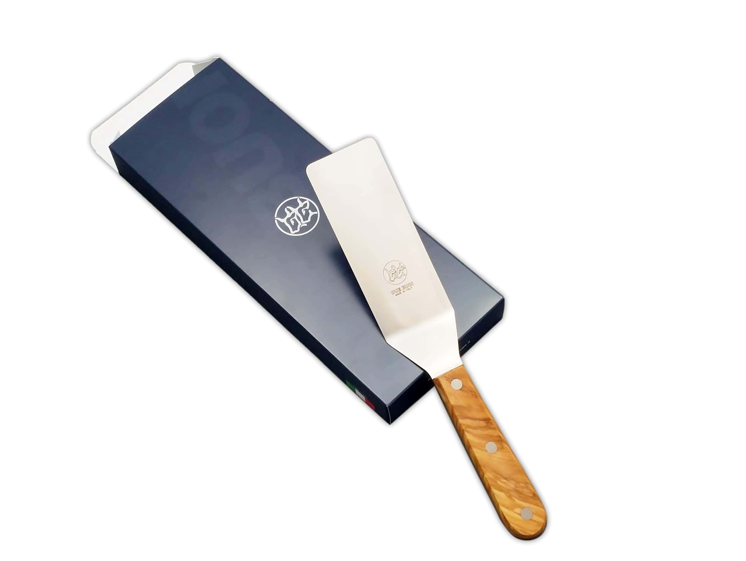 La espátula Due Buoi con mango de madera de olivo y remaches de acero inoxidable es la herramienta ideal para cocinar y mover alimentos pequeños en espacios reducidos. Su hoja estrecha de acero inoxidable le permite llegar a rincones y grietas que una hoja más grande no podría alcanzar. El mango de madera de olivo fijado con tres remaches de acero inoxidable asegura durabilidad y resistencia. La belleza natural de la madera de olivo y su cambio de color con el tiempo le dan a la espátula un aspecto atemporal y elegante. Diseñada con atención al detalle y calidad, esta espátula bien equilibrada y cómoda de usar durará muchos años con el cuidado adecuado. El mango de madera natural sin tratar puede exhibir ligeras variaciones estéticas con el tiempo, lo que es un sello distintivo de la madera maciza y no compromete el rendimiento de la espátula. Nuestro compromiso con los materiales naturales garantiza que nuestro producto sea seguro para el contacto con alimentos sin el uso de recubrimientos sintéticos.