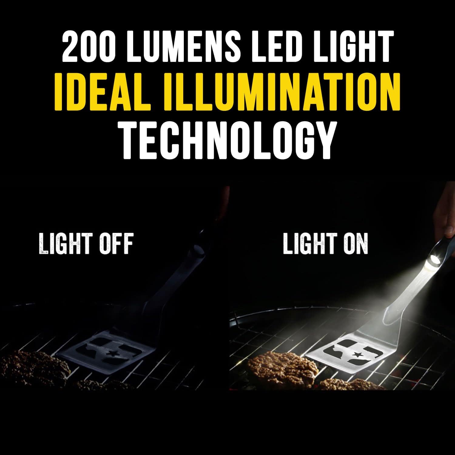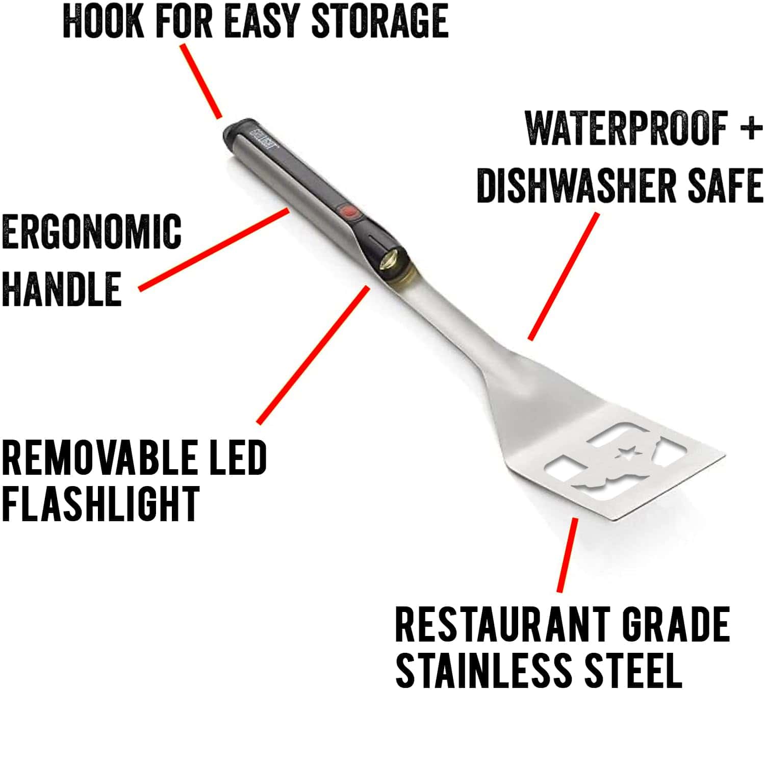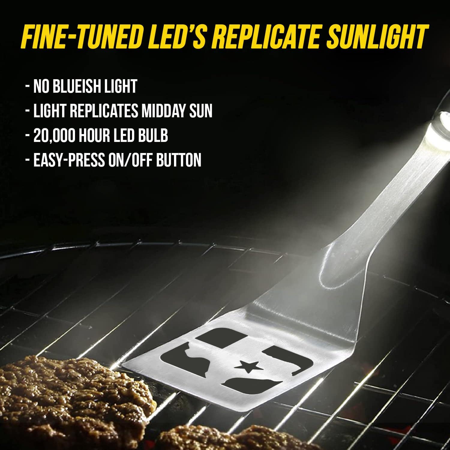 GRILL LIGHT Stainless Steel Lone Star Texas BBQ Grilling Spatula Turner with LED Flashlight – Thick Restaurant Grade Steel – Waterproof & Dishwasher Safe – Grill in the Dark