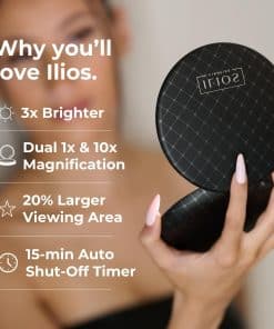 Este práctico espejo compacto LED iluminará tu vida para retoques de maquillaje o cuidado de la piel sin esfuerzo mientras estás en movimiento. Es el espejo magnificante de viaje perfecto con 1x y 10x de aumento. El diseño delgado y elegante es ideal para colocar en tu bolsillo, bolso o cartera. A diferencia de la mayoría de los espejos de aumento pequeños, el tamaño de 5 pulgadas es lo suficientemente grande para ver todo tu rostro. El diseño simple e intuitivo permite atenuar la luz sin problemas. Solo eres humano; dejar la luz encendida es un problema común con los espejos compactos iluminados. Un temporizador de apagado automático de 15 minutos incorporado evita que esto suceda. La batería recargable dura hasta 30 días, así que déjala en tu bolso para retoques diarios sobre la marcha.