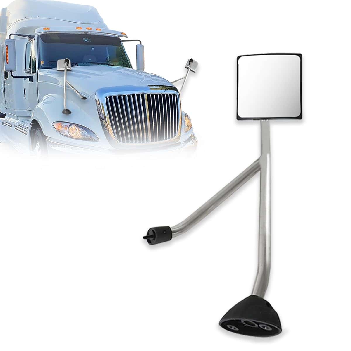 Espejo de capó cromado de repuesto para camiones semirremolque International Prostar 2008-2017 con brazo de montaje y espejos convexos para el lado derecho del acompañante. Compatible con camiones semirremolque International Prostar 2008-2017. Proporciona visibilidad adicional para el conductor, especialmente al maniobrar en espacios reducidos o al remolcar. Diseñado para atornillarse a los puntos de montaje existentes en el capó del camión (se recomienda la instalación profesional para garantizar un ajuste y funcionamiento adecuados). Carcasa de espejos con material de alta calidad ABS, altamente resistente a golpes, vibraciones para cualquier carretera difícil y función duradera y confiable durante climas adversos. Incluye 1 espejo de capó; garantía protegida de 6 meses. Al comprar espejos de capó cromados, asegúrese de que sean compatibles con el modelo específico de su camión y el año.