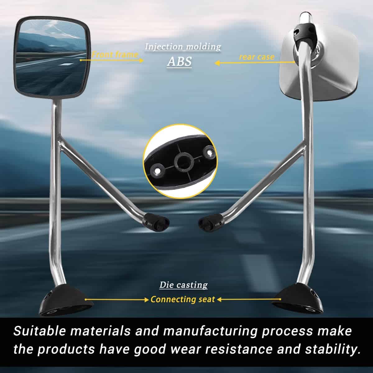 3. Alta calidad: Nuestros espejos están hechos de plástico y vidrio de alta calidad, alta definición y calidad, larga vida útil, proporcionan espejos mejores y más anchos, mejoran el campo de visión, reducen los puntos ciegos y mejoran la seguridad al conducir.