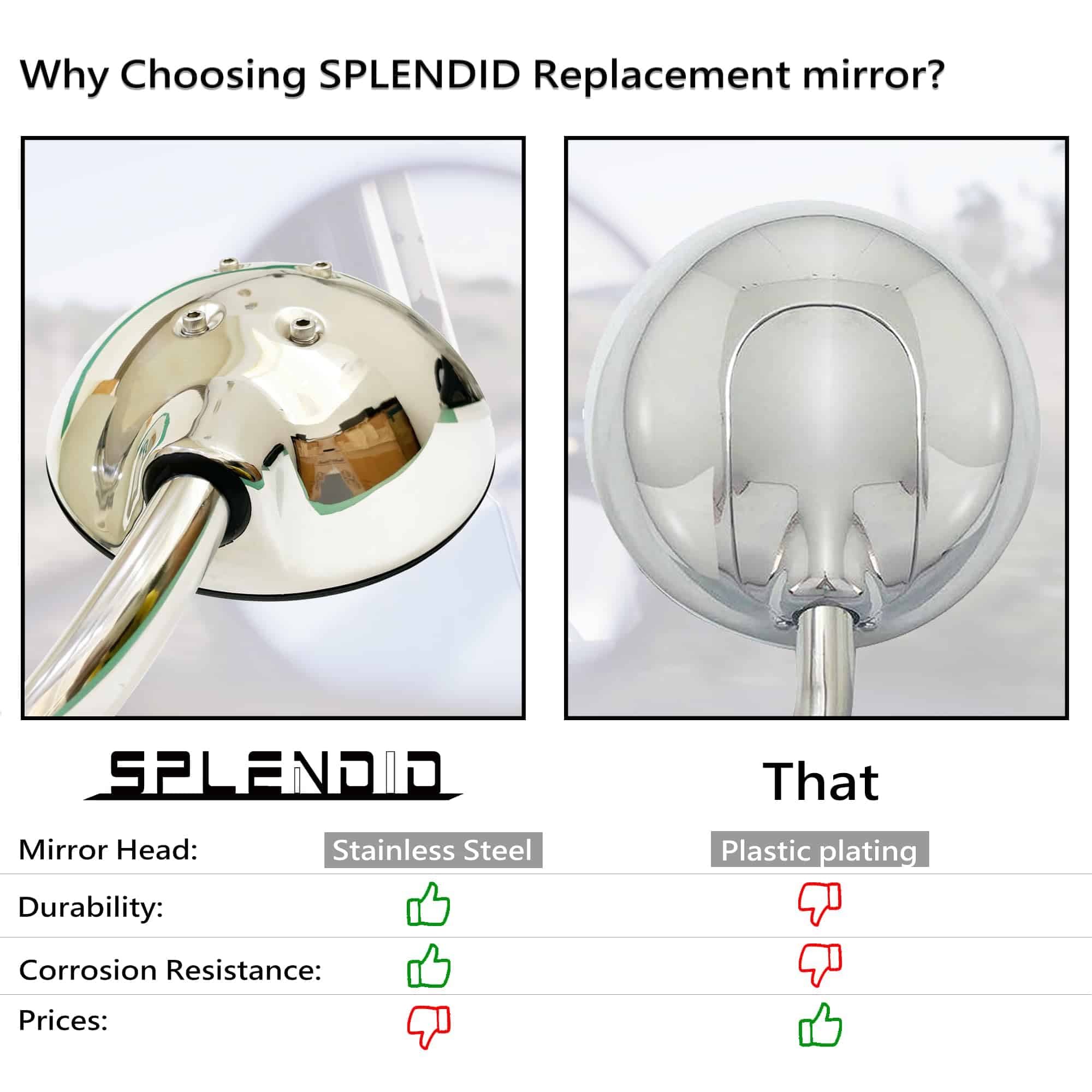 Espejo de capó de reemplazo SPLENDID para Kenworth T680