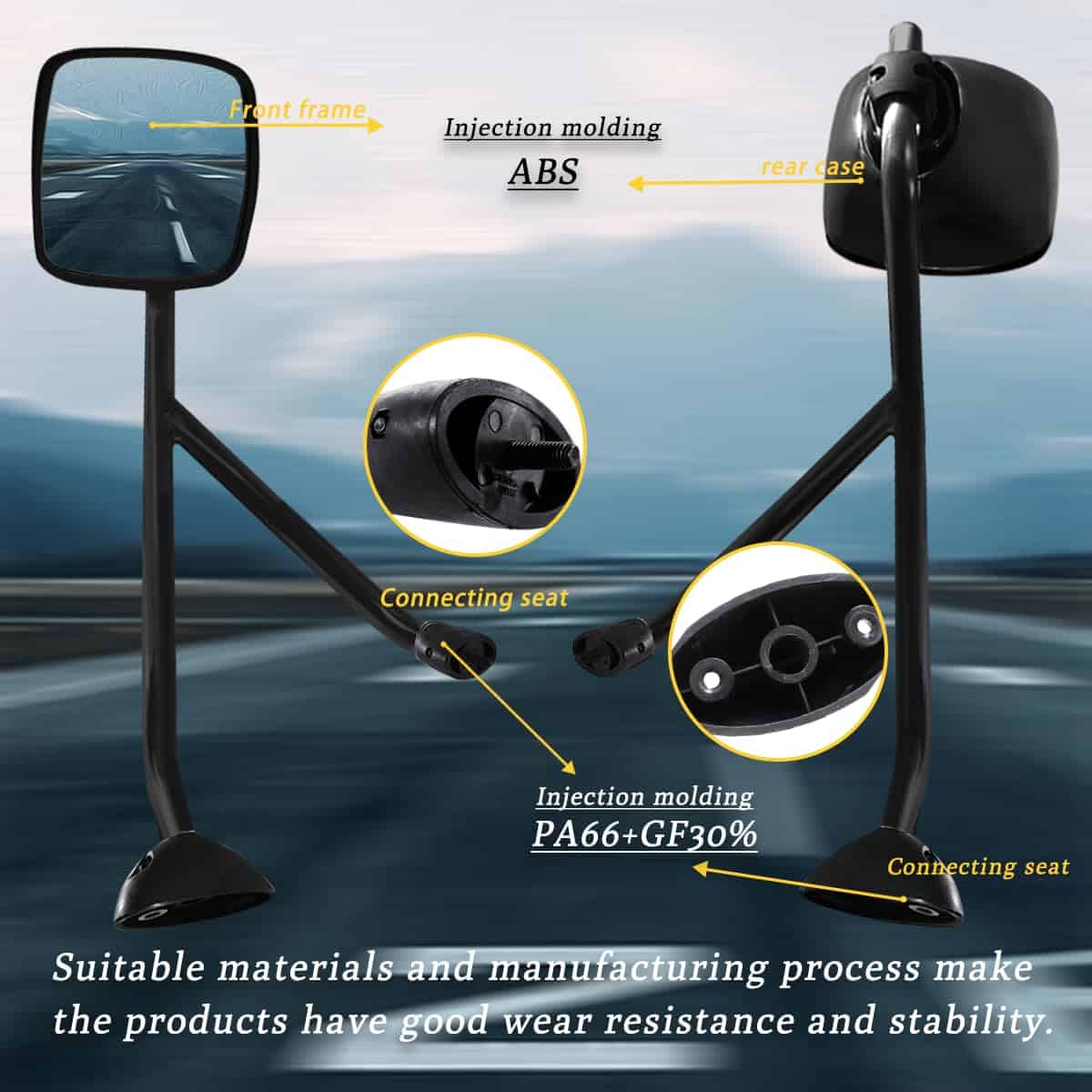 Mejora la seguridad: carcasas de espejos con material ABS de alta calidad, altamente resistente a golpes y vibraciones para cualquier tipo de terreno y duraderas y fiables en condiciones climáticas adversas.