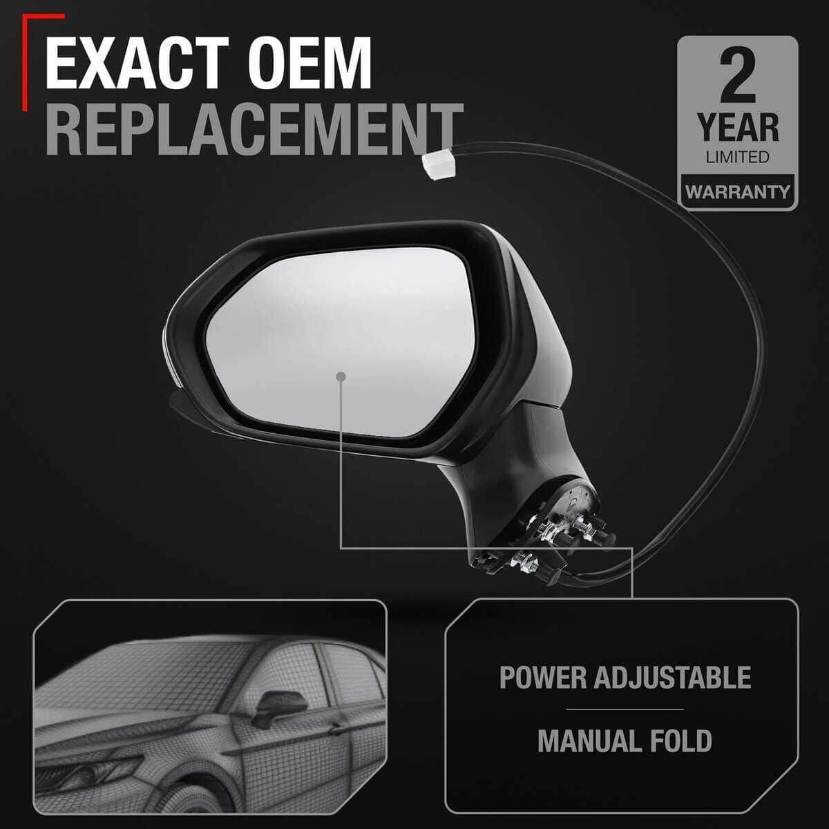 Espejo de lado del pasajero de reemplazo – Compatible con