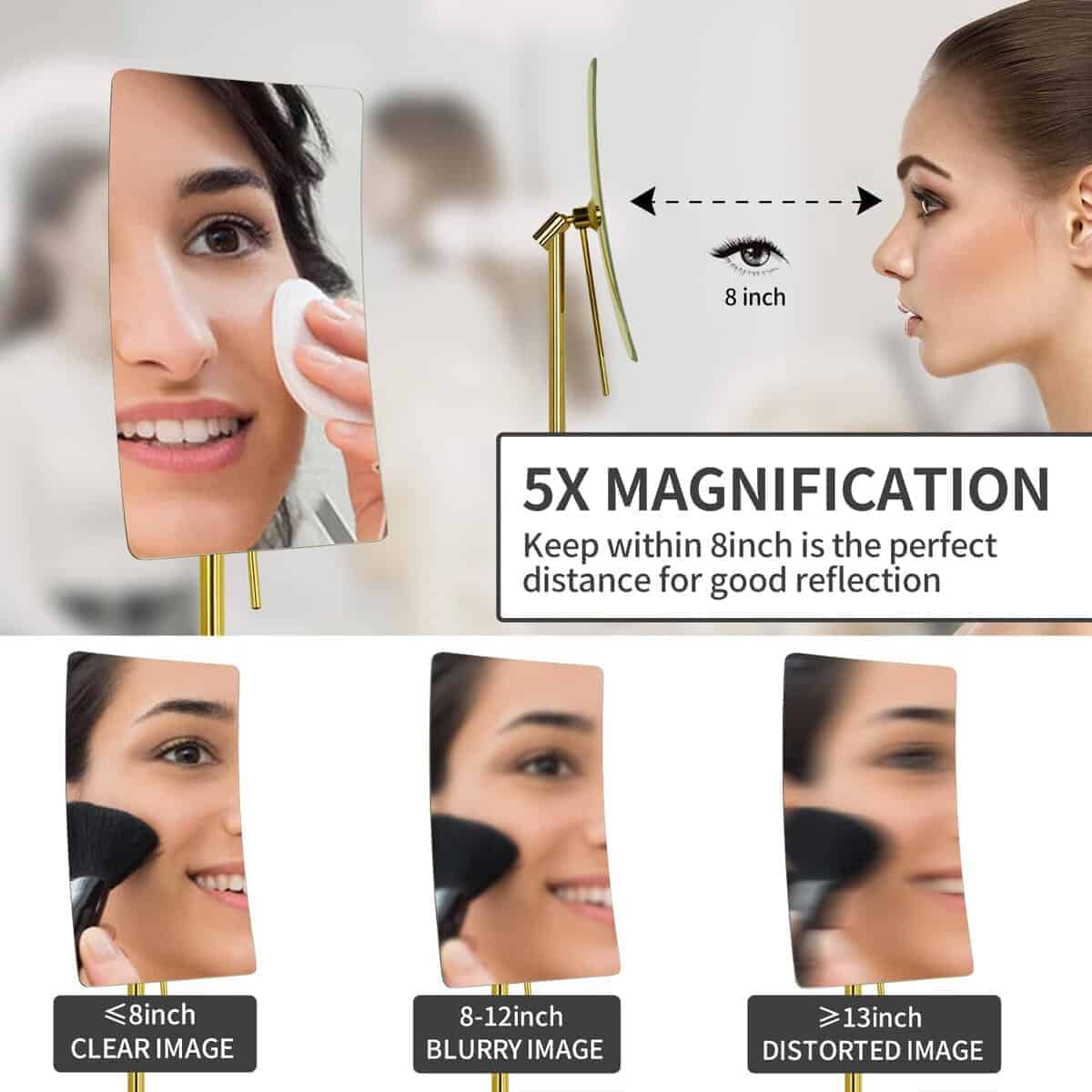 Espejo de Maquillaje de Aumento de 5X con Base Ajustable