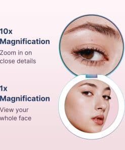 2. Aumento doble (1x y 10x) para aplicar maquillaje completo, hacer retoques rápidos sobre la marcha o enfocarte en una tarea detallada como depilarte las cejas o colocar lentes de contacto.