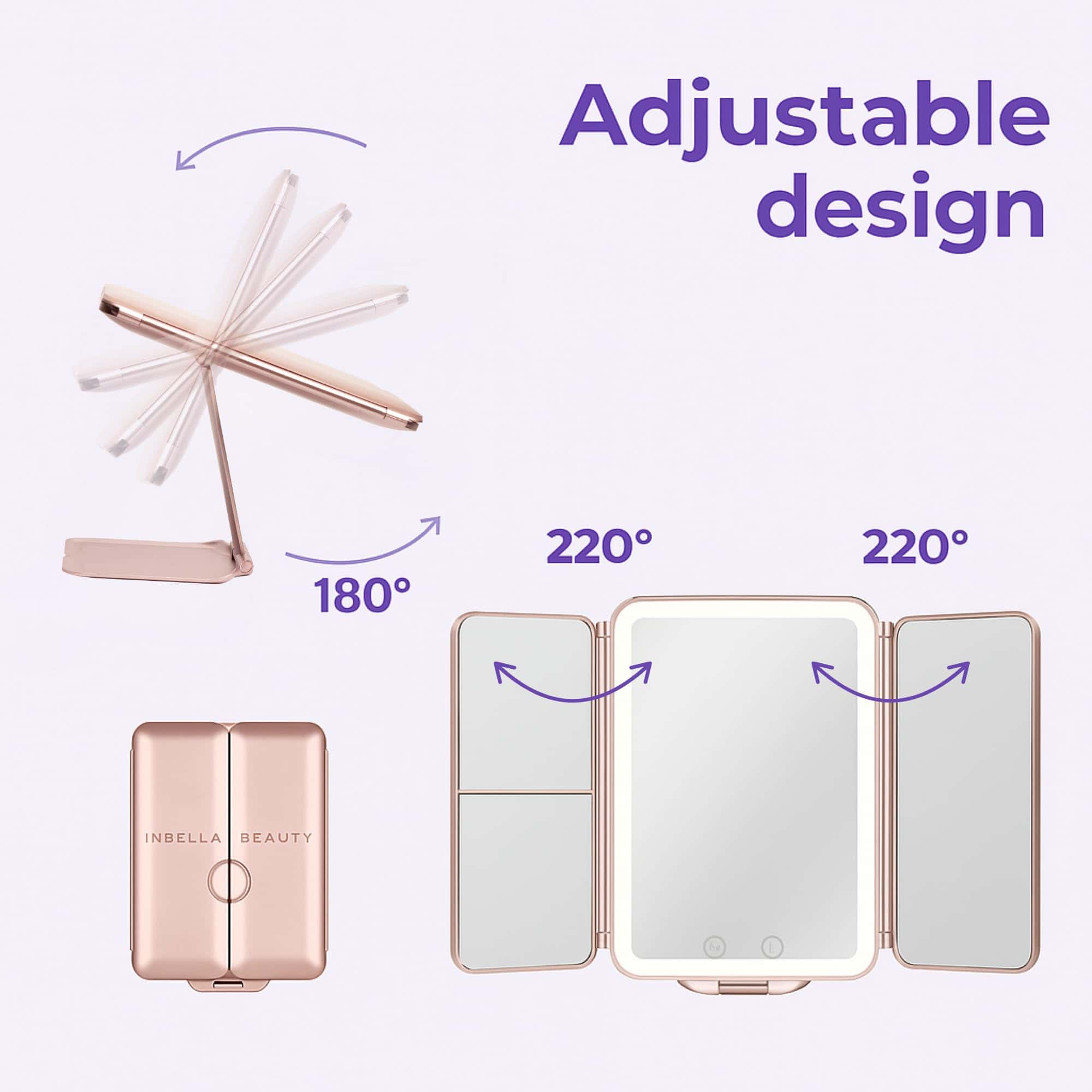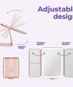 Este espejo de maquillaje LED con luces te ayuda a aplicar maquillaje, realizar cuidados de la piel o simplemente brillar de día o de noche. Cuenta con zonas de aumento de 1X, 3X y 5X para ver cada detalle con precisión sin distorsión. Diseño elegante y compacto, ideal para cualquier espacio. Recargable y portátil para tu estilo de vida. Viene en un empaque premium, listo para regalar en cumpleaños, fiestas o momentos de amor propio. Un regalo pensado para hijas, novias, madres o adolescentes.