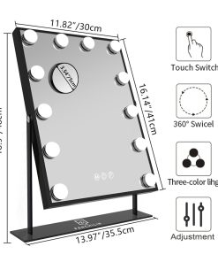 El espejo de vanidad con luces Fenchilin tiene control táctil inteligente: simplemente enciende/apaga el espejo de maquillaje LED y ajusta el brillo tocando el interruptor del sensor en la pantalla. La función de memoria hace que este espejo iluminado regrese al mismo brillo cuando lo usaste por última vez. Rotación de 360 grados y aumento desmontable de 10X: rotación de 360 grados que se puede fijar en cualquier posición para darte el ángulo de visión perfecto, aumento desmontable de 10X que te ayuda a ver cada detalle claramente y aplicar un maquillaje delicado para delineador de ojos, cejas y labios. Seguro y duradero: espejo Hollywood alimentado por un adaptador certificado UL de 60″ extra largo, diseñado con 12 bombillas no reemplazables con una vida útil de 50000 horas. El embalaje a prueba de golpes único garantiza que el espejo llegue en buen estado.