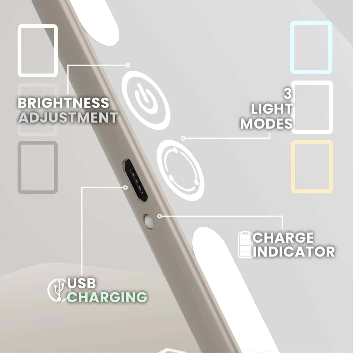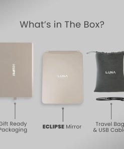 El LUNA London Eclipse es un versátil espejo de maquillaje iluminado que puedes usar como un espejo de tocador en casa colocado en un escritorio, o simplemente deslízalo en una bolsa y úsalo como un espejo de viaje cuando estés de vacaciones o yendo al trabajo. Al plegarlo fácilmente, su diseño ligero lo convierte en un accesorio de viaje compacto y práctico. Tradicionalmente, la iluminación de los espejos de hotel y baño puede hacer difícil realizar tu rutina de belleza. Los 3 modos de luz de anillo regulables del Eclipse simulan cálida suave, blanco neutral o luz natural para crear la configuración de luz perfecta para la habitación en la que te encuentres. El Eclipse es recargable por USB, lo que te permite tener un espejo LED portátil en movimiento, sin cable. Si necesitas recargar, simplemente utiliza el cable USB proporcionado para volver a cargar. Personalízalo o conviértelo en un regalo perfecto eligiendo entre la selección de espejos coloridos de LUNA London. Disponible en Oro Rosa, Lavanda, Rojo Escarlata y Negro Mate.