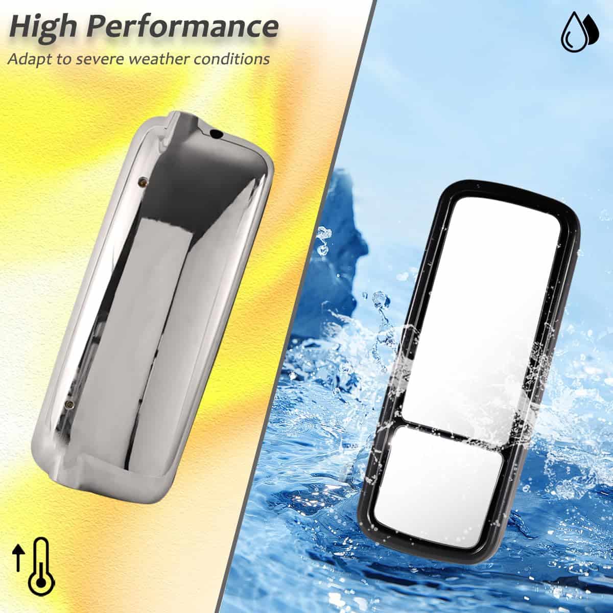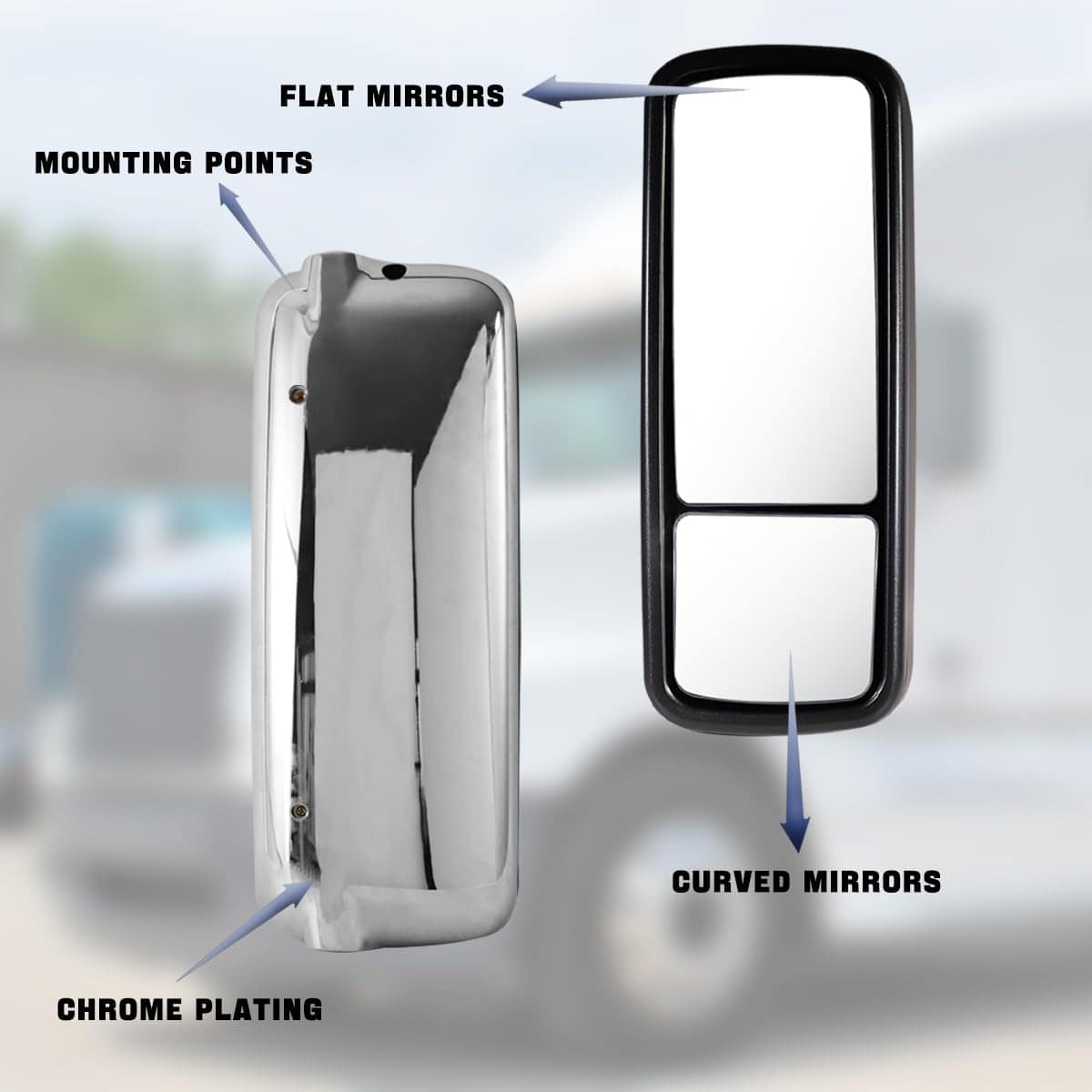 Espejo de puerta derecho cromado con función de calefacción para Freightliner Columbia Century, diseñado para ajustarse a los camiones Freightliner Century Columbia fabricados entre 1996 y 2010. Fabricado con ABS de alta calidad y tratado con superficie negra para una apariencia elegante. El espejo cuenta con una función de calefacción que ayuda a limpiar la escarcha y el hielo, manteniendo una visión clara incluso en condiciones climáticas frías. La instalación es sencilla y no requiere herramientas especiales, lo que facilita el proceso. Garantía de calidad del producto y compromiso con el servicio al cliente. Si tiene alguna pregunta o inquietud, no dude en contactarnos.