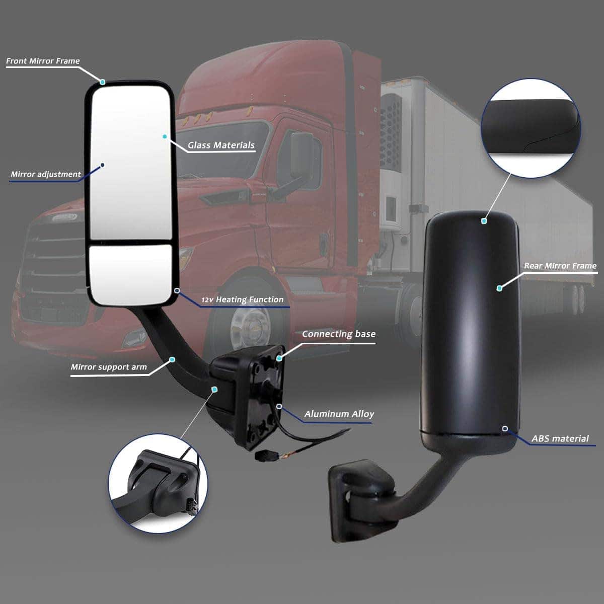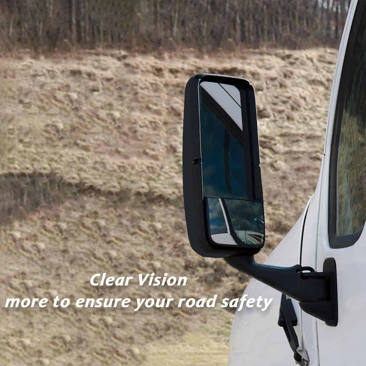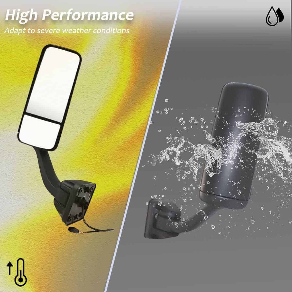 2. Espejo de puerta calefaccionado y motorizado con alta estabilidad, solidez y durabilidad que puede ser ajustado eléctricamente permitiéndole ajustarse fácilmente al ángulo perfecto con una amplia vista que ahorra tiempo y garantiza seguridad.